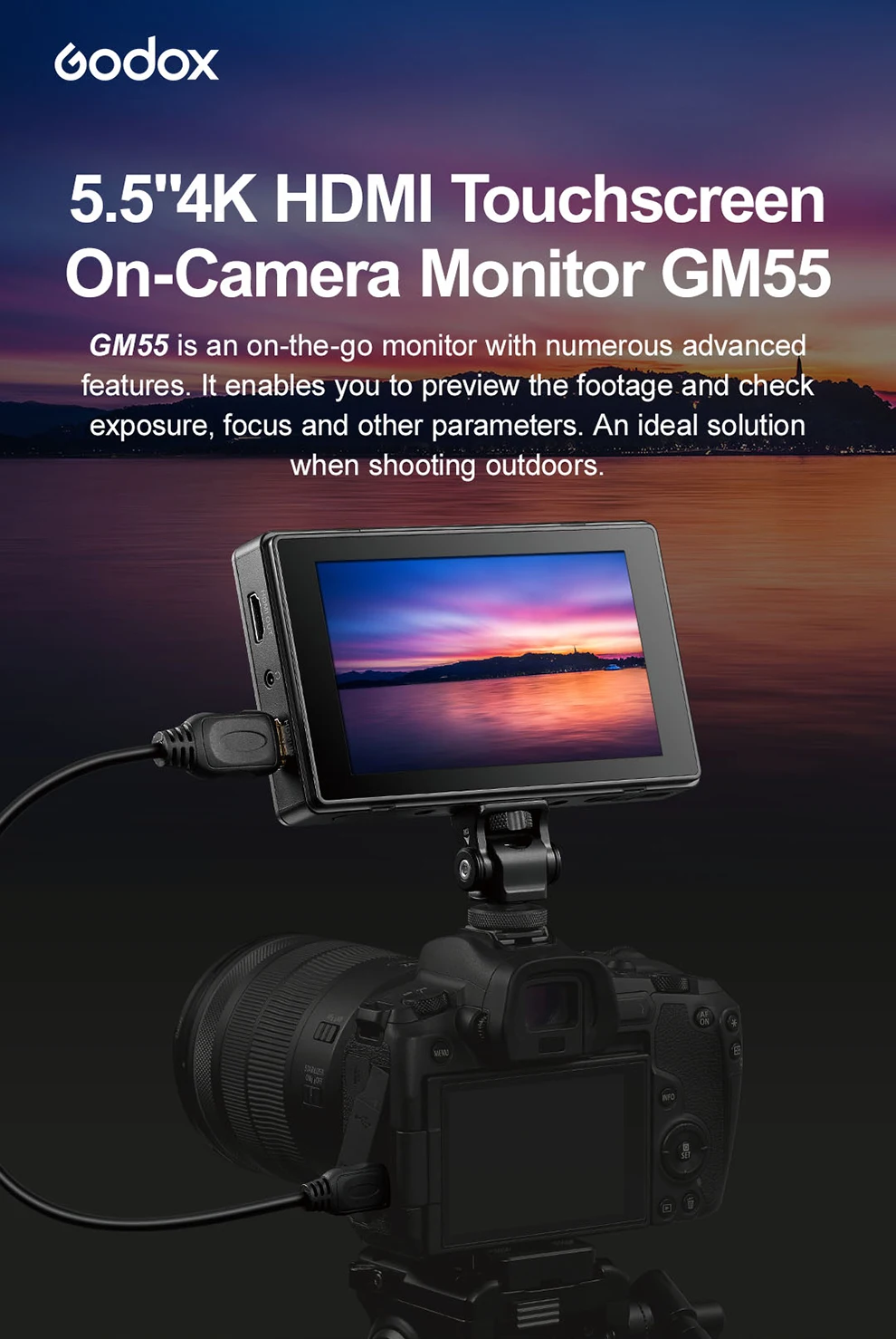 Отзывы о Godox GM55 4K монитор 5 дюймов на камере DSLR 3D LUT сенсорный экран IPS FHD 1920x1080 видео HDMI