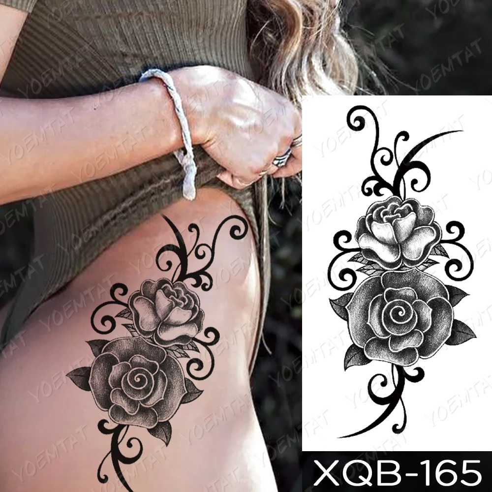 Отзывы о Водостойкая временная татуировка наклейка эскиз лилии Синий татуировки розы