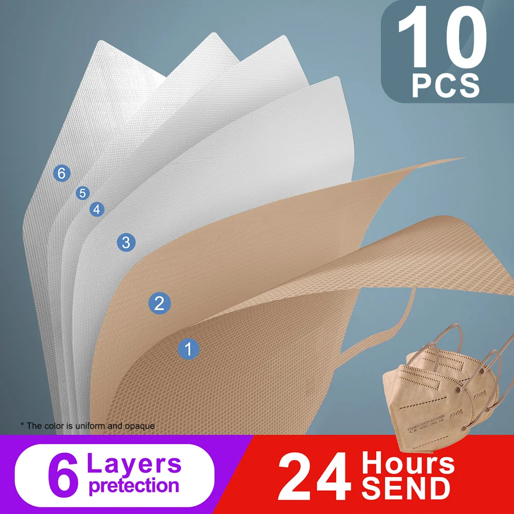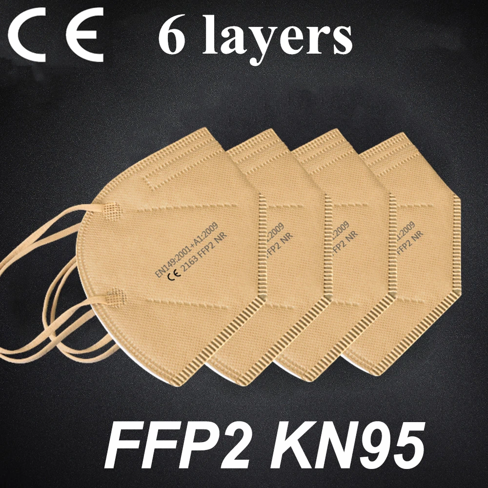 10-100 шт хаки Mascarilla обновление 6 слоев FFP2 KN95 маска для лица защита от пыли KN95 маски для рта многоразовый фильтр ffp2mask CE