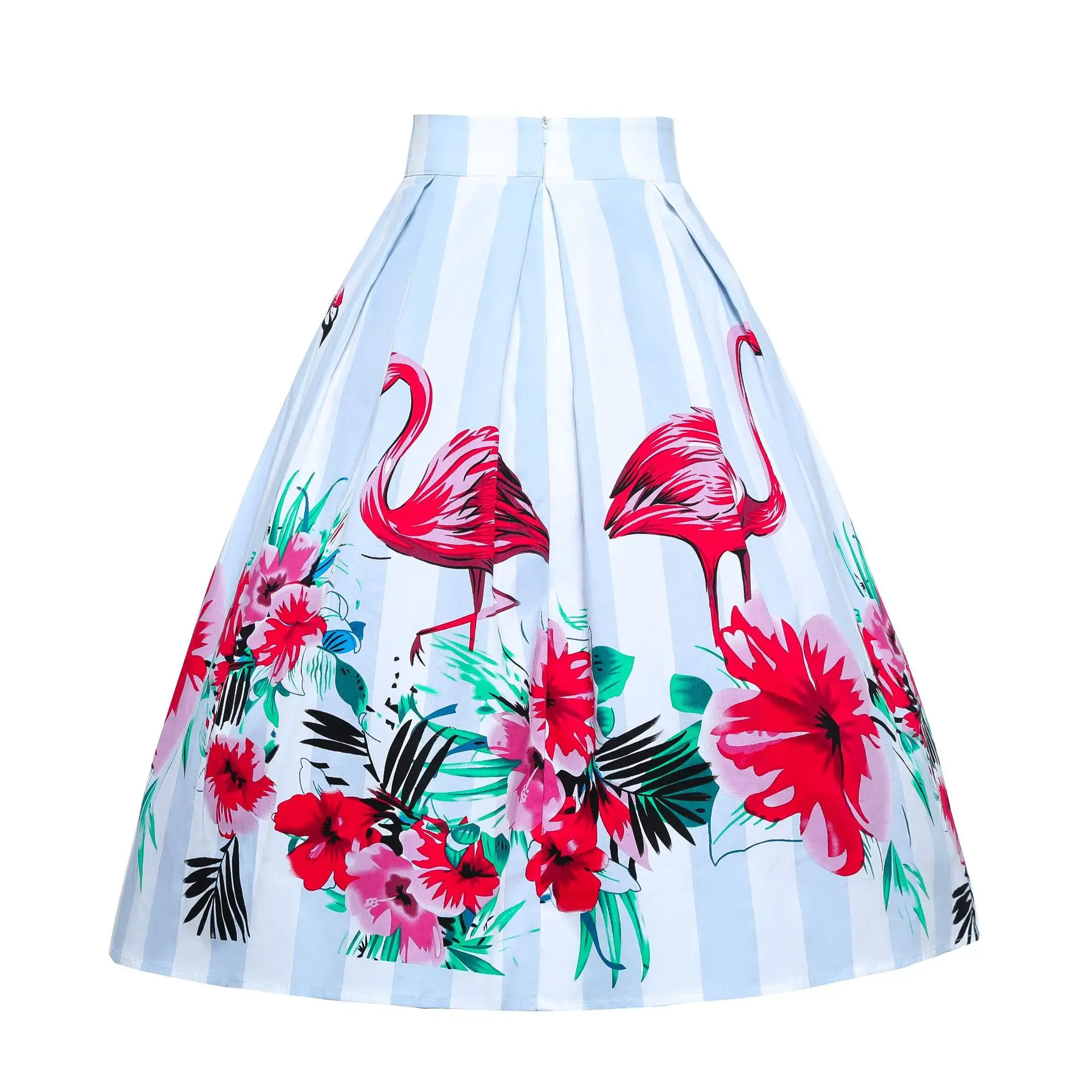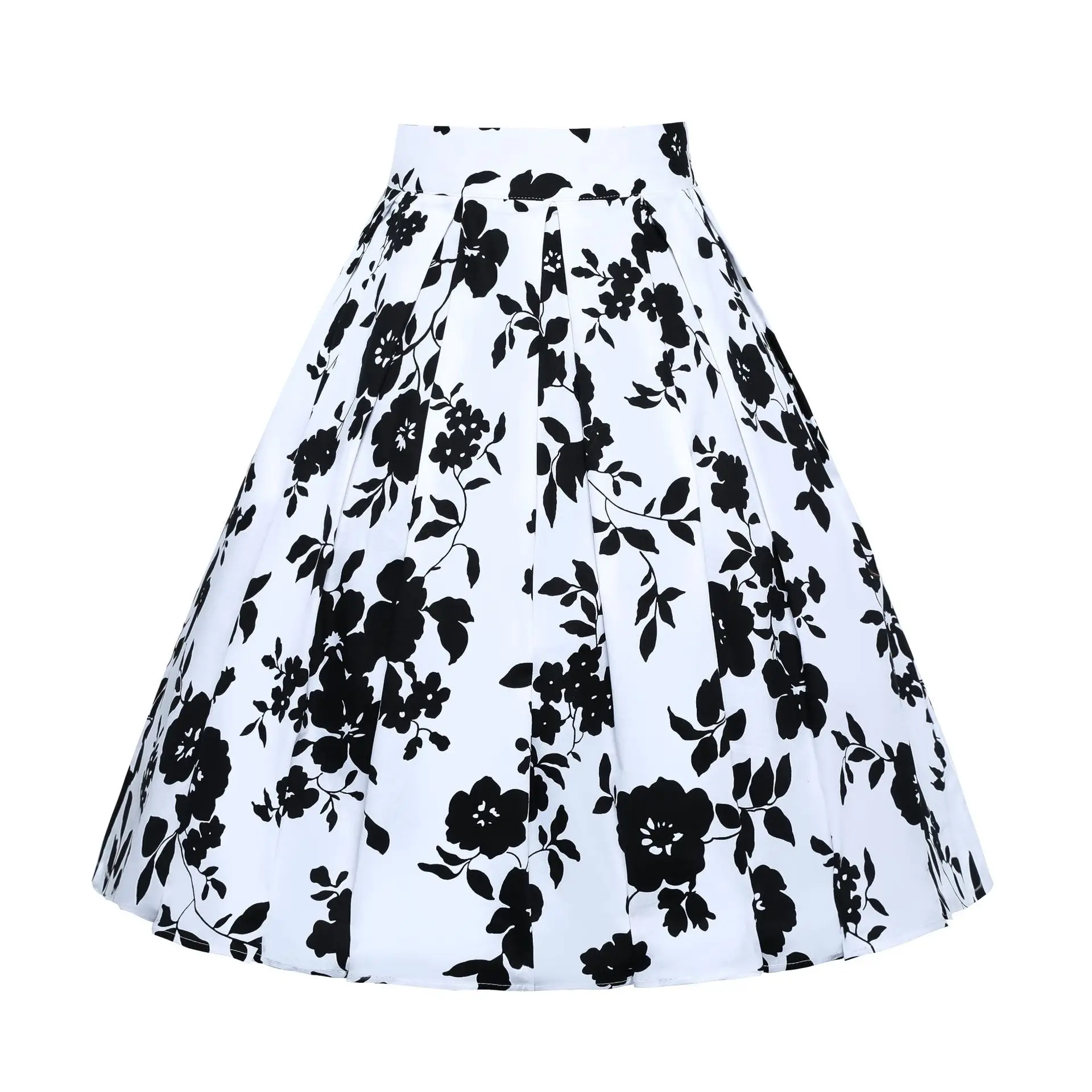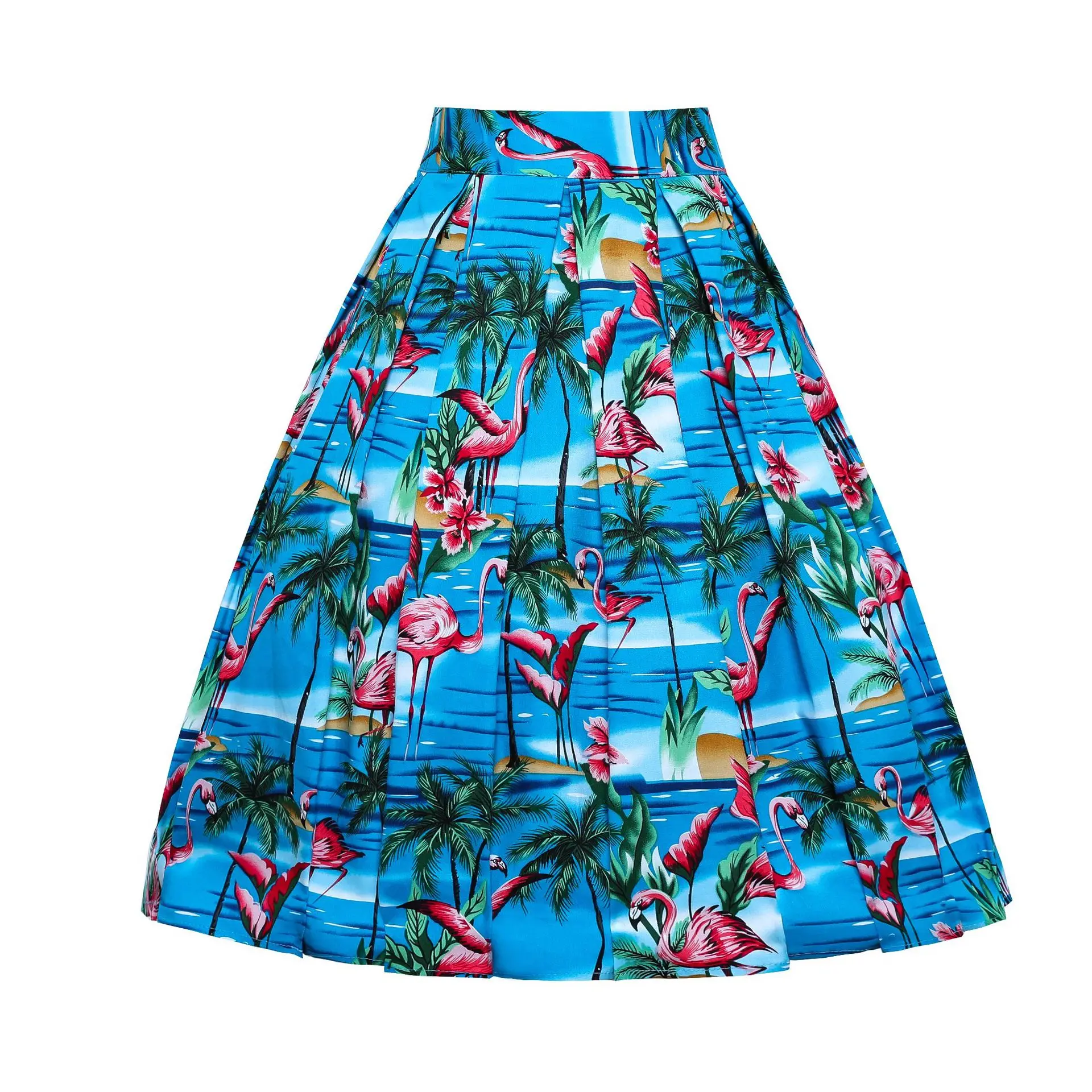 2021 Новое поступление, летняя трапециевидная винтажная юбка с цветочным принтом, 50s, стильная рокабилли, юбки для свинга, Женская Ретро миди-юбка с высокой талией