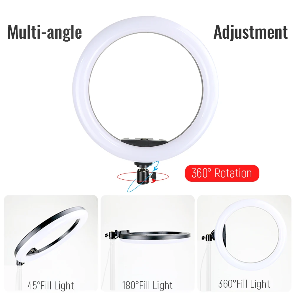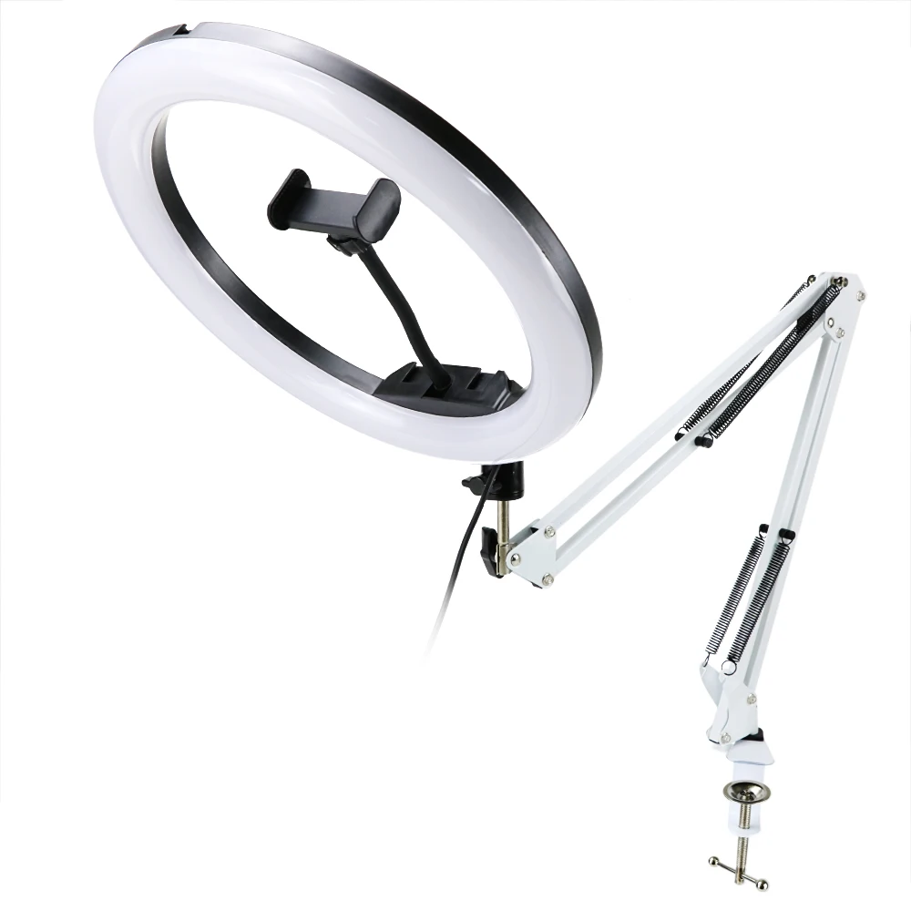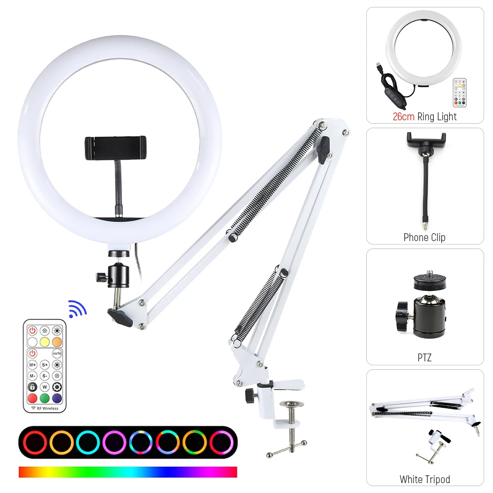 Rgb-кольцевой светильник с регулируемой яркостью, видео светильник s, лампа для селфи с белым длинным кронштейном, держатель для телефона, подставка, светильник для фотосъемки для Youtube