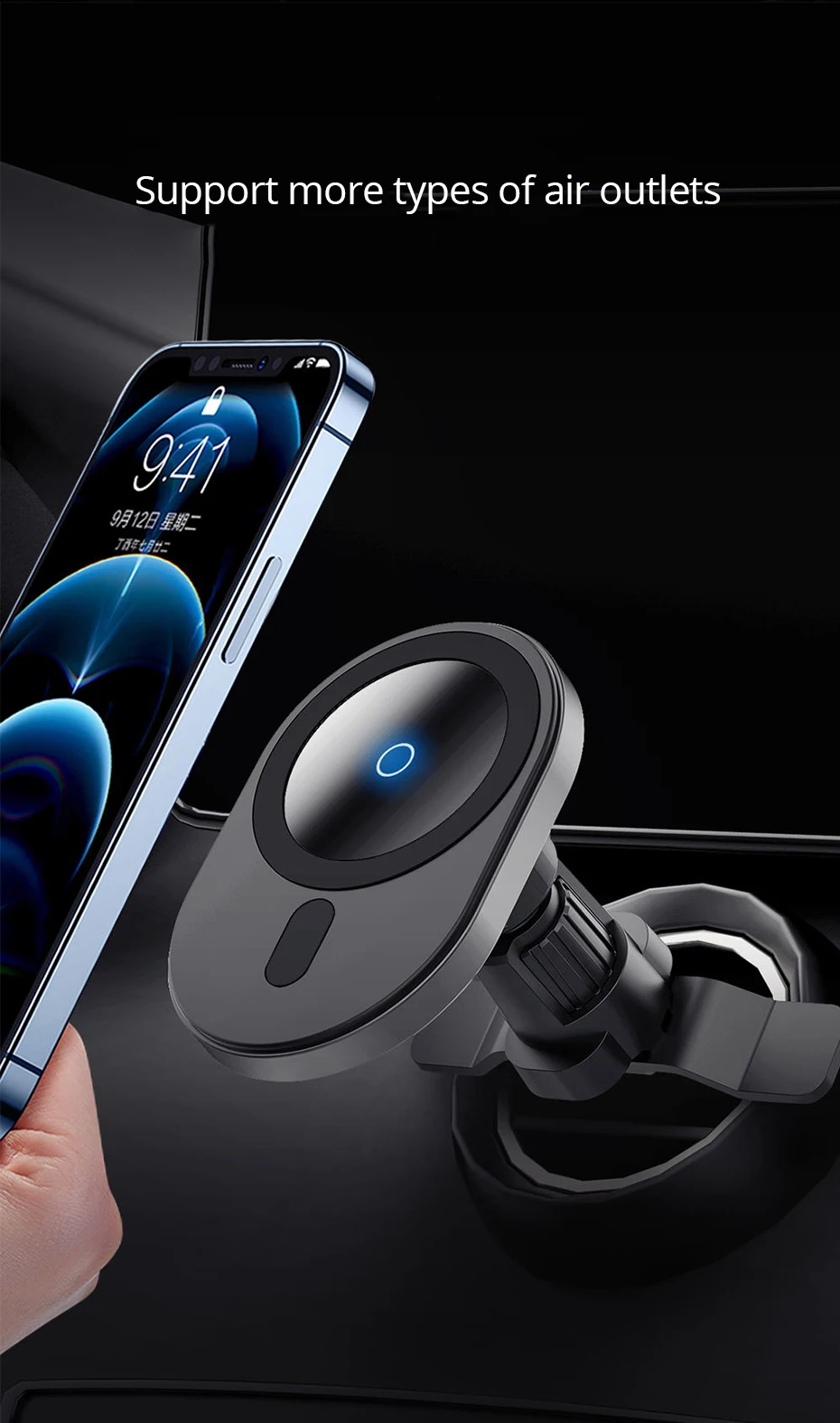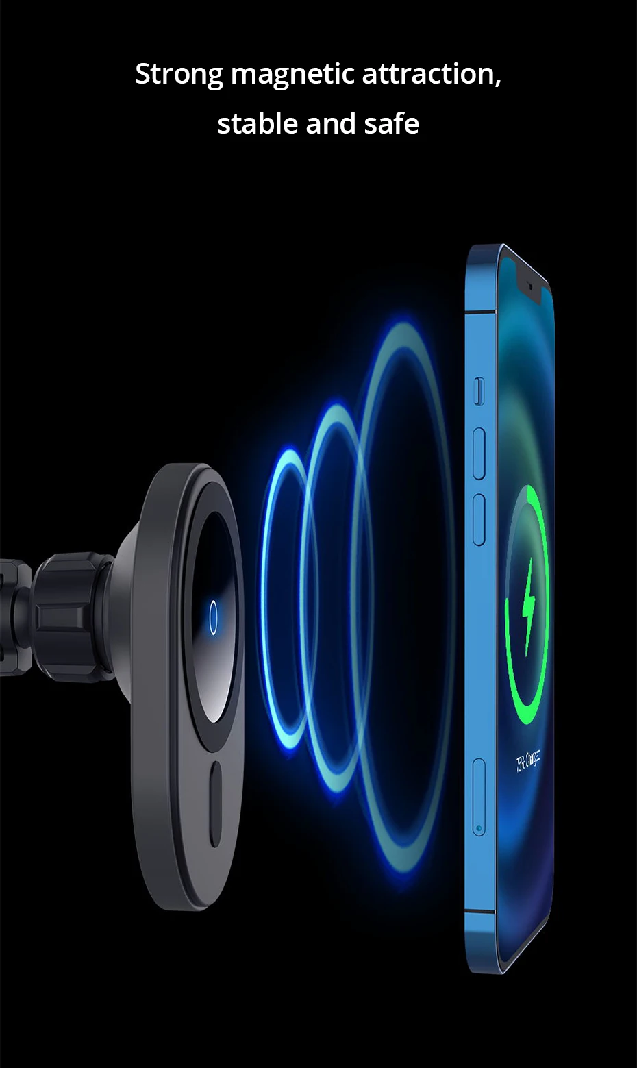 Этот продукт предназначен для iPhone 13 12 серии магнитных. Другие смартфоны, поддерживающие беспроводную зарядку qi, должны добавить магнитную пластину