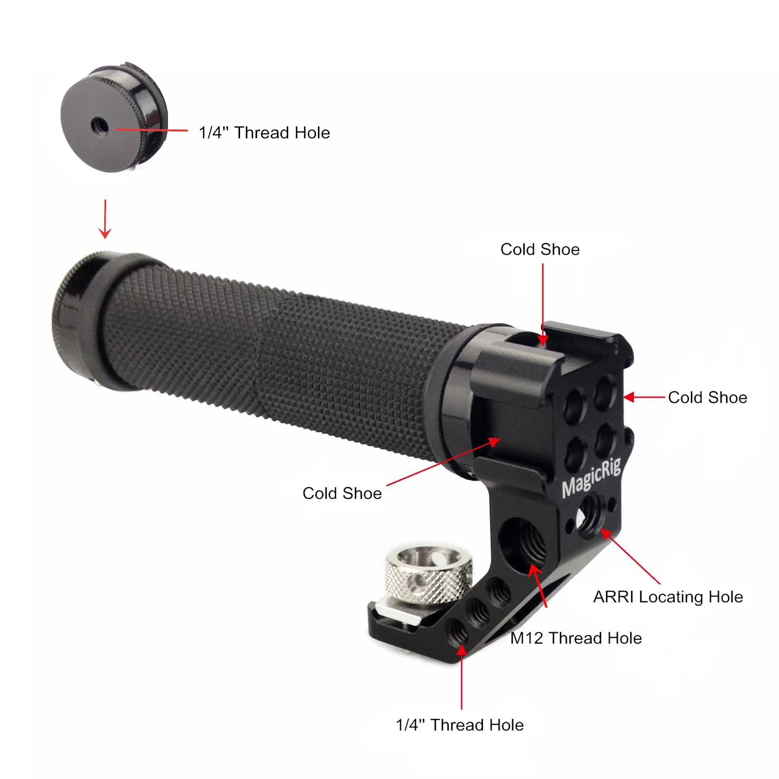 【Быстрая установка 】 ручка крепится к отверстию ARRI для установки камеры, которое легко снимается под низким углом. Ручка может быть плотно заблокирована с помощью винта большого пальца. Примечание: Вы можете использовать шестигранный гаечный ключ для дальнейшего блокировки
