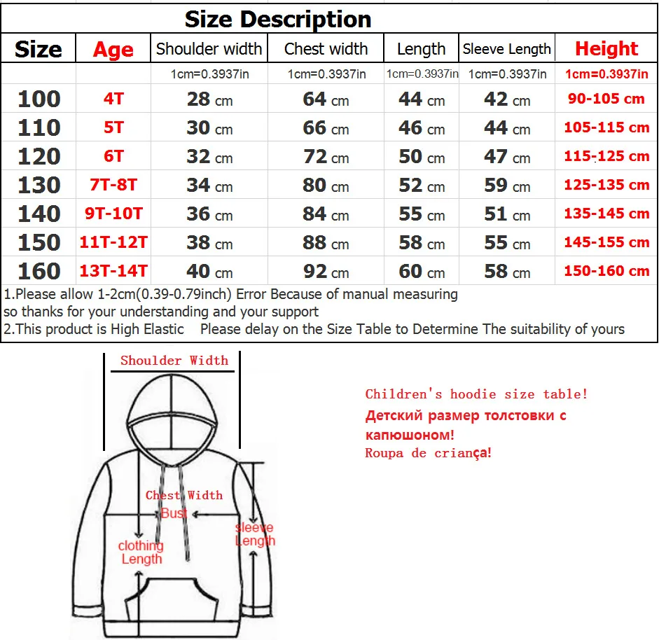 Название продукта: футболка, короткий рукав, футболка с капюшоном пуловер Подходящий сезон: весна, лето, осень Цвет: как на изображении Пол: унисекс для мальчиков/девочек/детей Рисунок: 3D принт Материал: полиэстер Стиль: Модный и повседневный Размер: 100/110/120/130/140/150/160 100: длина: 43 см, обхват груди: 66 см (для возраста 3-4 лет) 110: длина: 46 см, обхват груди: 70 см (для возраста 4-5 лет) 120: длина: 49 см, обхват груди: 74 см (для возраста 5-6 лет) 130: длина: 52 см, обхват груди: 78 см (для возраста 6-7 лет) 140: длина: 55 см, обхват груди: 82 см (для возраста 8-9 лет) 150: длина: 58 см, обхват груди: 86 см (для возраста 10-12 лет) 160: длина: 61 см, обхват груди: 90 см (для возраста 13-14 лет) 1 см = 0,393 дюйма Посылка включает: 1 * футболка Примечание: 1. Из-за различных методов измерения допускается погрешность в 1-3 см Рекомендуем выбрать больший размер!