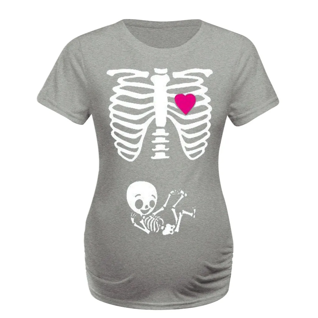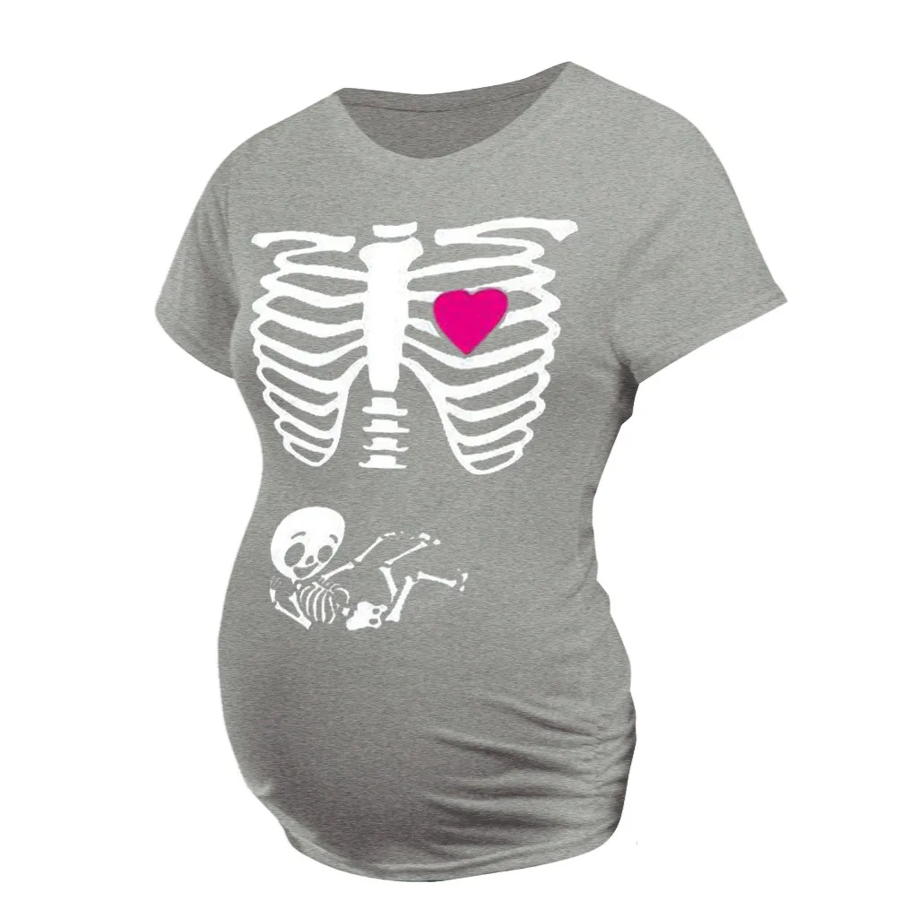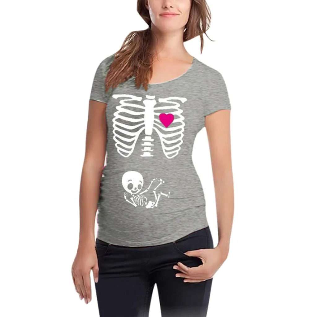Women Maternity Short Sleeve Skeleton Print Tops T-shirt Pregnant Casual Clothes