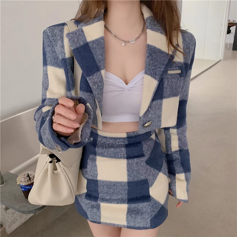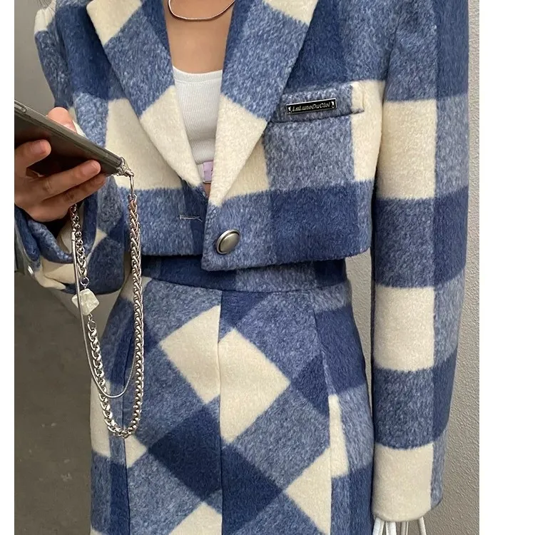 Отзывы о Шерстяной костюм с юбкой в клетку женский на весну новый темперамент гонконгском