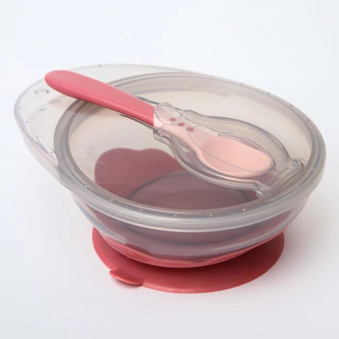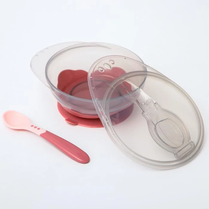 Набор для кормления: миска на присоске, с крышкой + ложка, цвет розовый 4770839