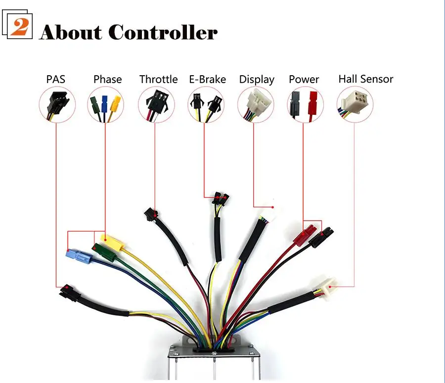 2) 30A/35A контроллер x13) дисплейИ руководствоX14) дроссельная заслонка x15) Тормоз отключения питания x16) датчик PAS x17) Застежка-Молния и защитная линия x18) пакет контроллера x1 (подарок)Параматор продукта