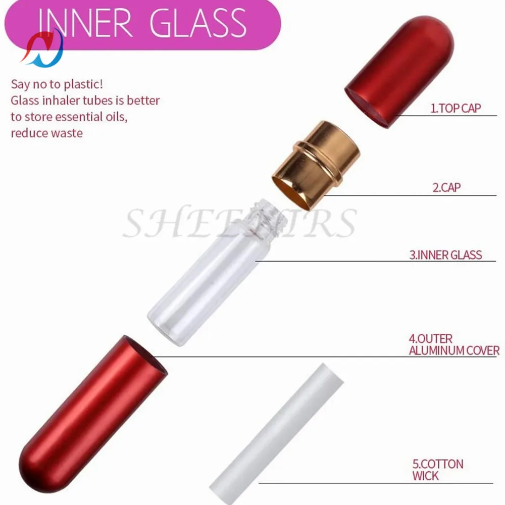 Наименование товара: ароматерапия эфирное масло алюминий и стекло контейнеры для носовых ингаляторов с полиэстером фитили