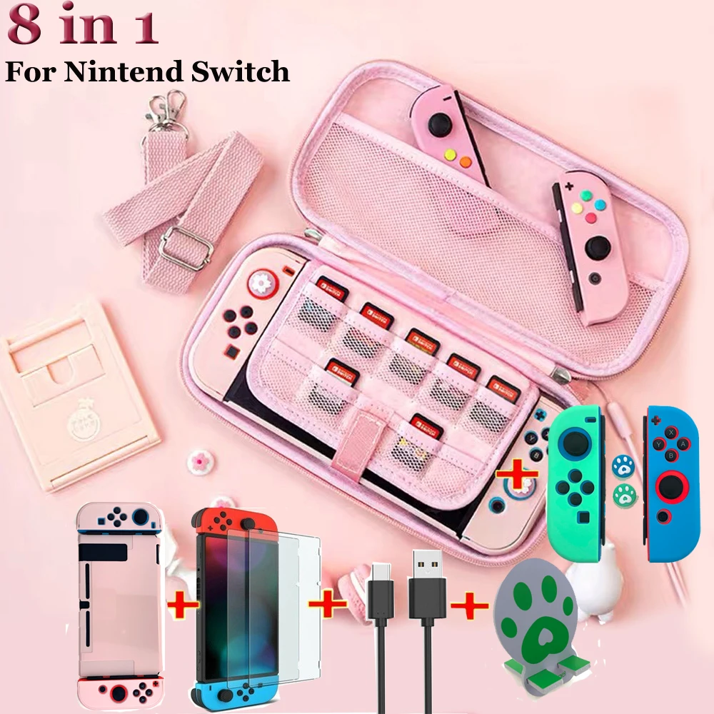 8 в 1 переключатель розовый Сакура чехол для переноски Защитный пакет водонепроницаемый милый палец Захваты защита экрана ремешок