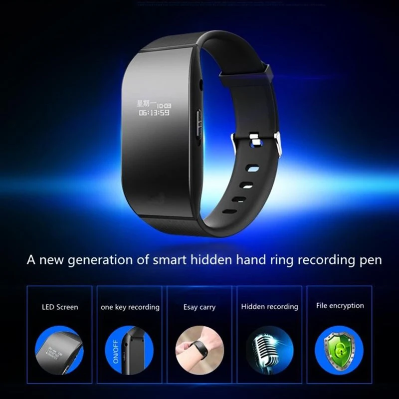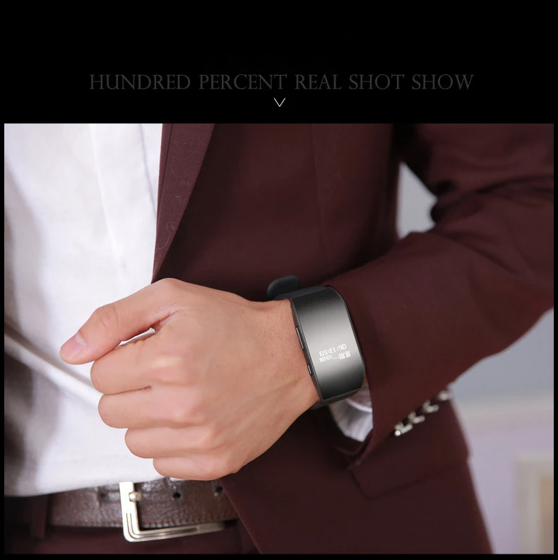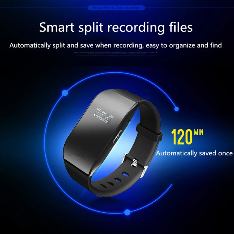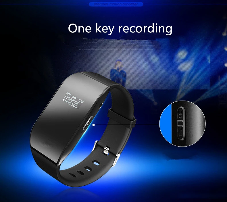 Color:Black Build in 8G Memory Built-in Li-ion battery Build in lithium battery can work 20+ hours Recording ouput format: WAV Recording quality: 192kbps Support music format: WAV / MP3 / WMA (mp3 player) Body material: medical silicone 8GB memory can record about 96 hours Mini size: 3.5cm * 3cm * 0.8cm Build in 1.2inch LED for Display Time and date Headphone Jack: 3.5mm