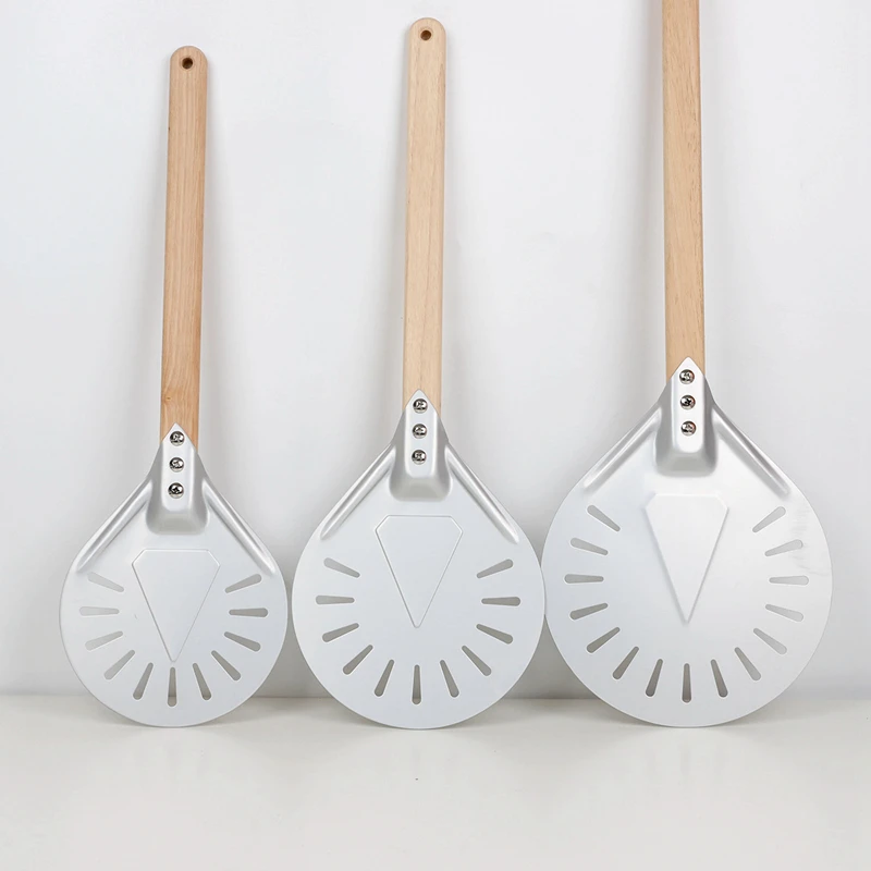 Алюминий сплав пиццы токарная обработка корки круглый из дерева, с длинной ручкой Лопата для пиццы с перфорацией для пиццы весло выпечки инструменты 7 ''8'' 9''Характеристики: