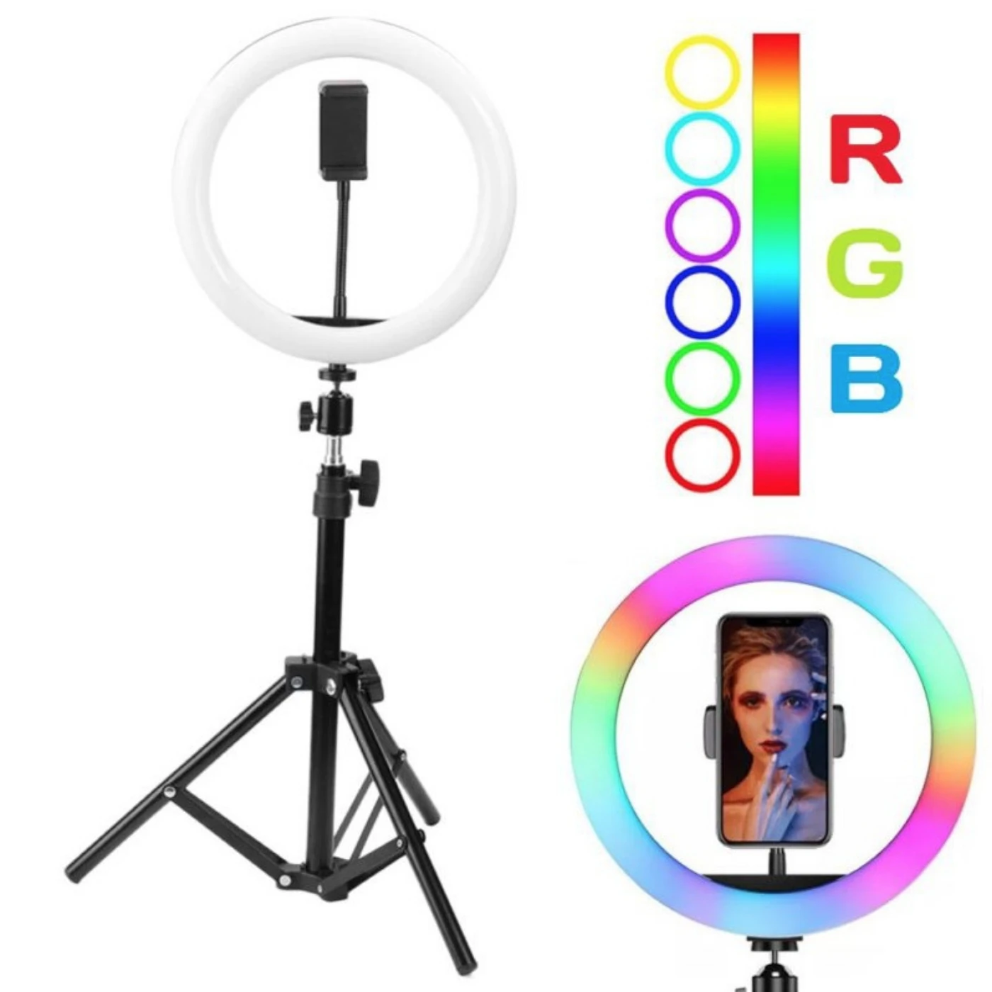 Color multicolor lamp for the most creative RGB LED ring MJ 33 on an adjustable tripod.