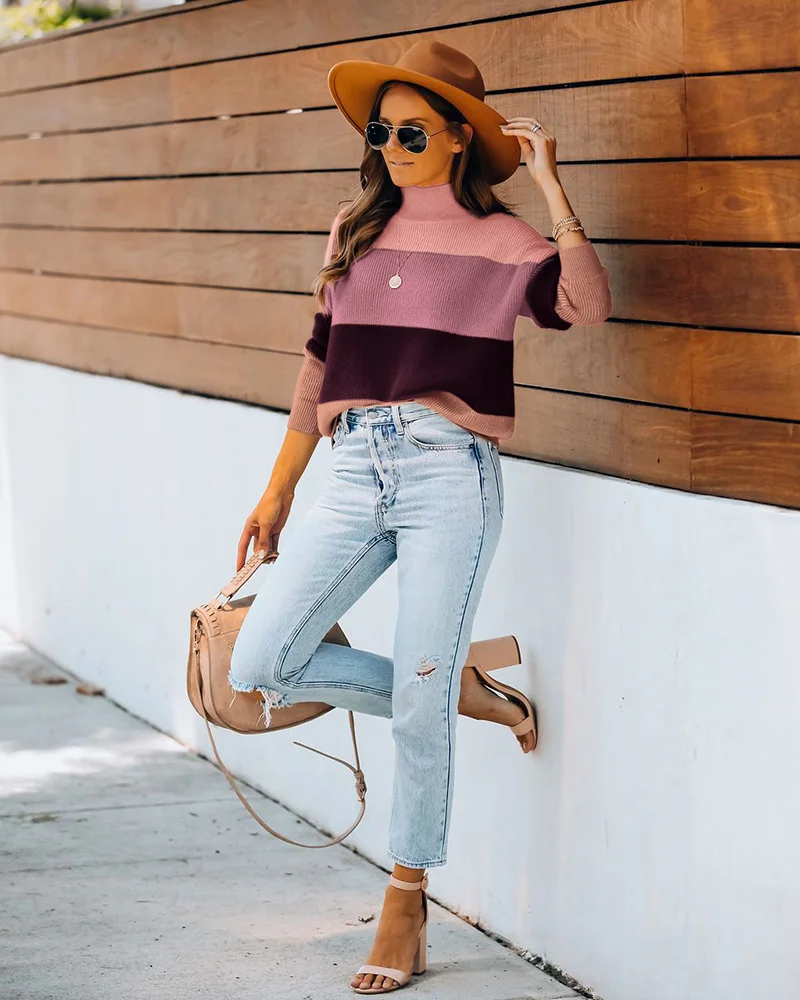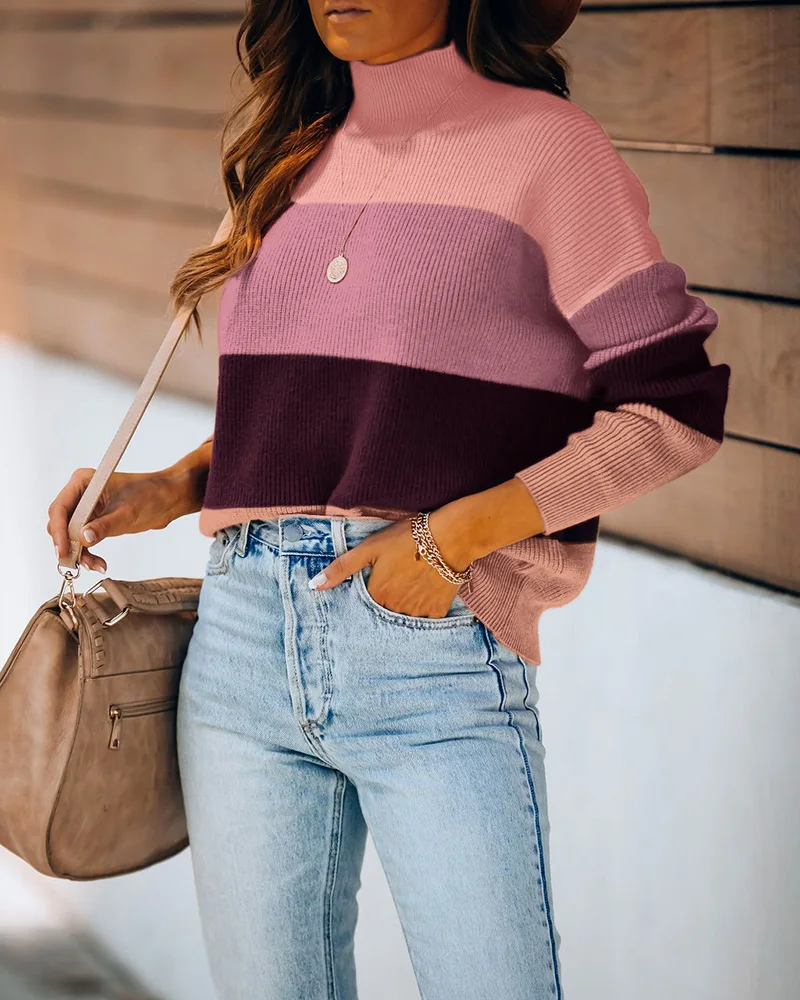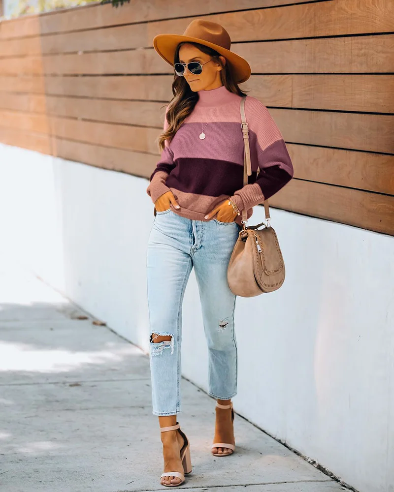 Отзывы о Женский винтажный свитер с высоким воротником вязаный джемпер в стиле пэчворк