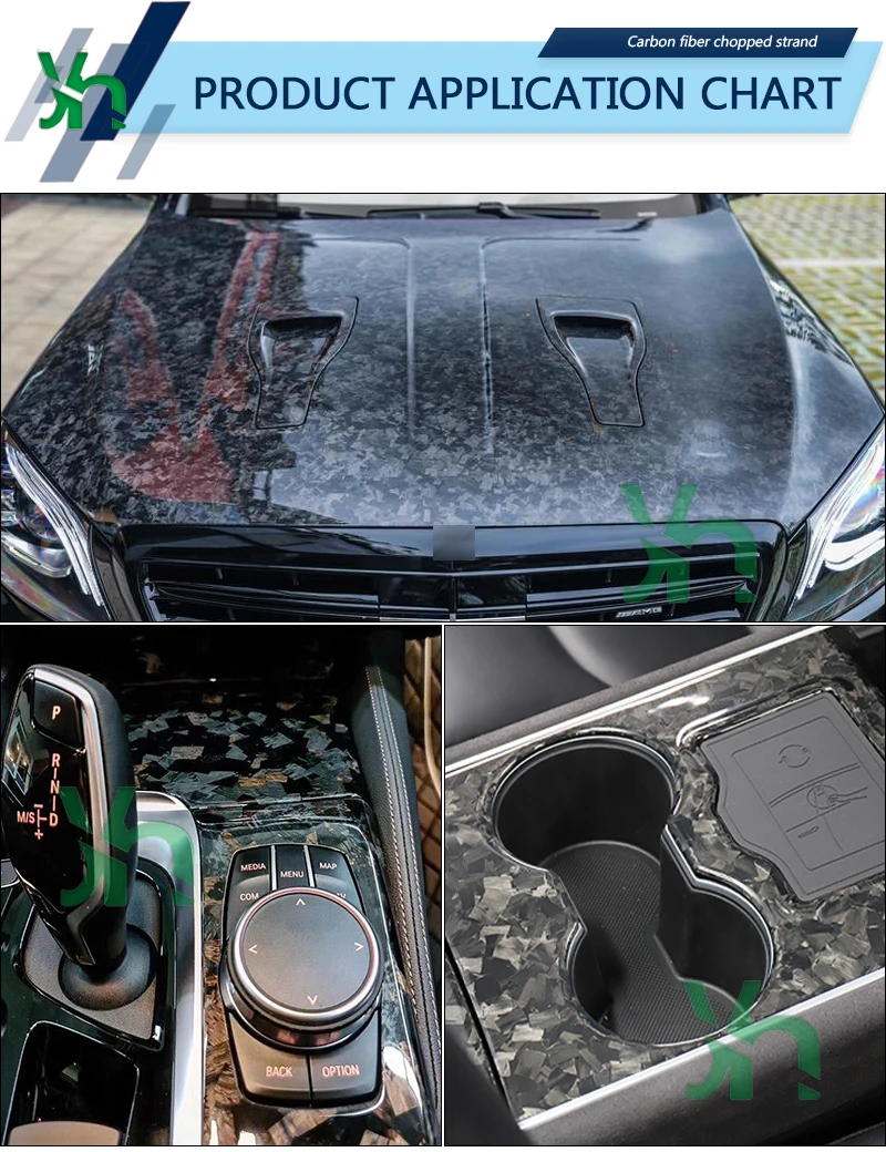 Рубленое углеродное волокно из-за логистики и транспортировки может привести к тому, что рубленое волокно станет очень свободным, и эффект не так хорош, как на картинке. Изображение-это эффект перед транспортировкой