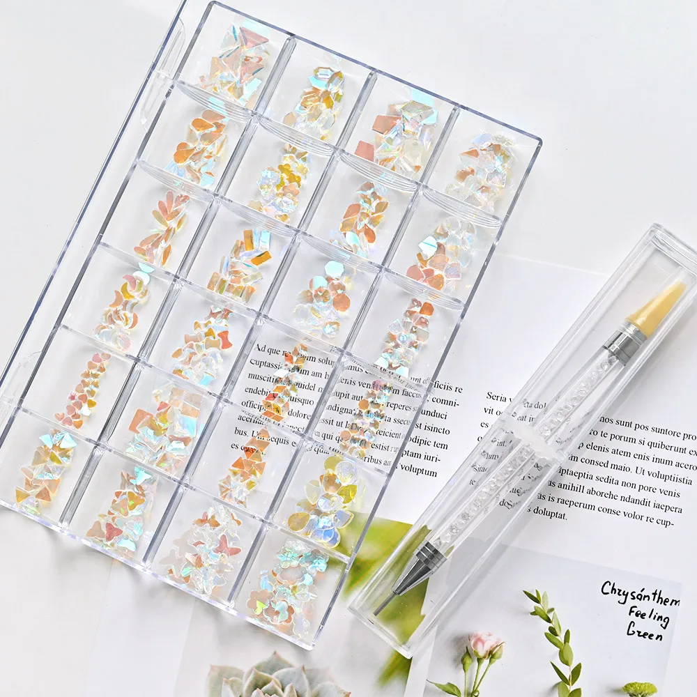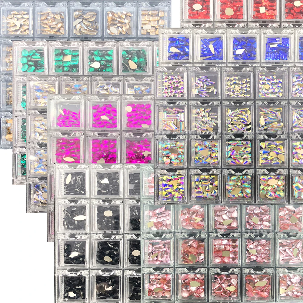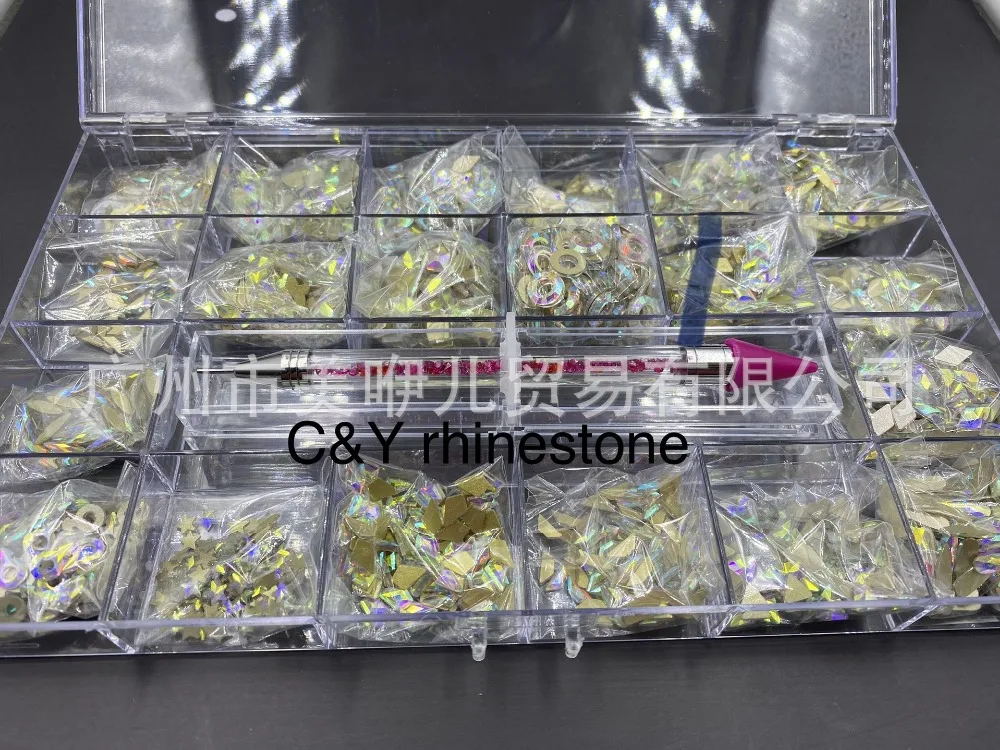 2000 шт (20*100) кристаллы AB Стразы в сетках 20 формы плоские стразы для дизайна ногтей с 1 ручкой в прозрачной большой коробке & * &
