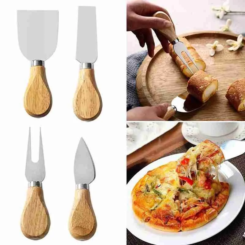 Отзывы о Набор стальных ножей для сыра с 4 шт. мини Лопатка масла деревянной ручкой вилка