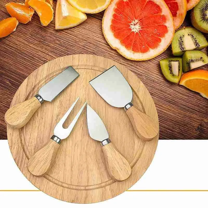 Набор ножей для сыра с 4 шт. деревянной ручкой из нержавеющей стали мини нож для масла лопатка Вилка Нож для сыра резак столовые приборы бамбуковая доска