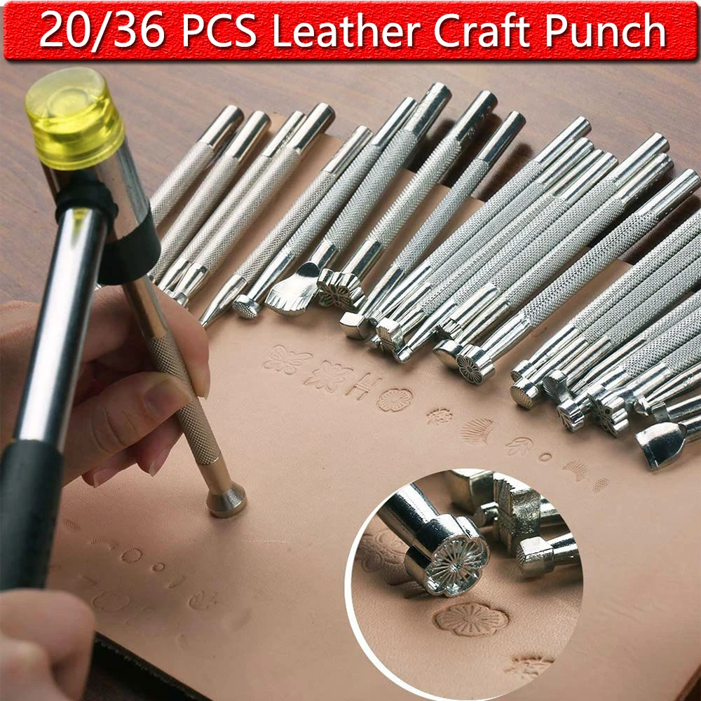 20/36 шт. кожа инструменты для тиснения кожи ремесла инструменты могут различаться Форма марки набор «сделай сам» для удар деревянный молоток тиснение фаской шлифовальная ящик для инструментов