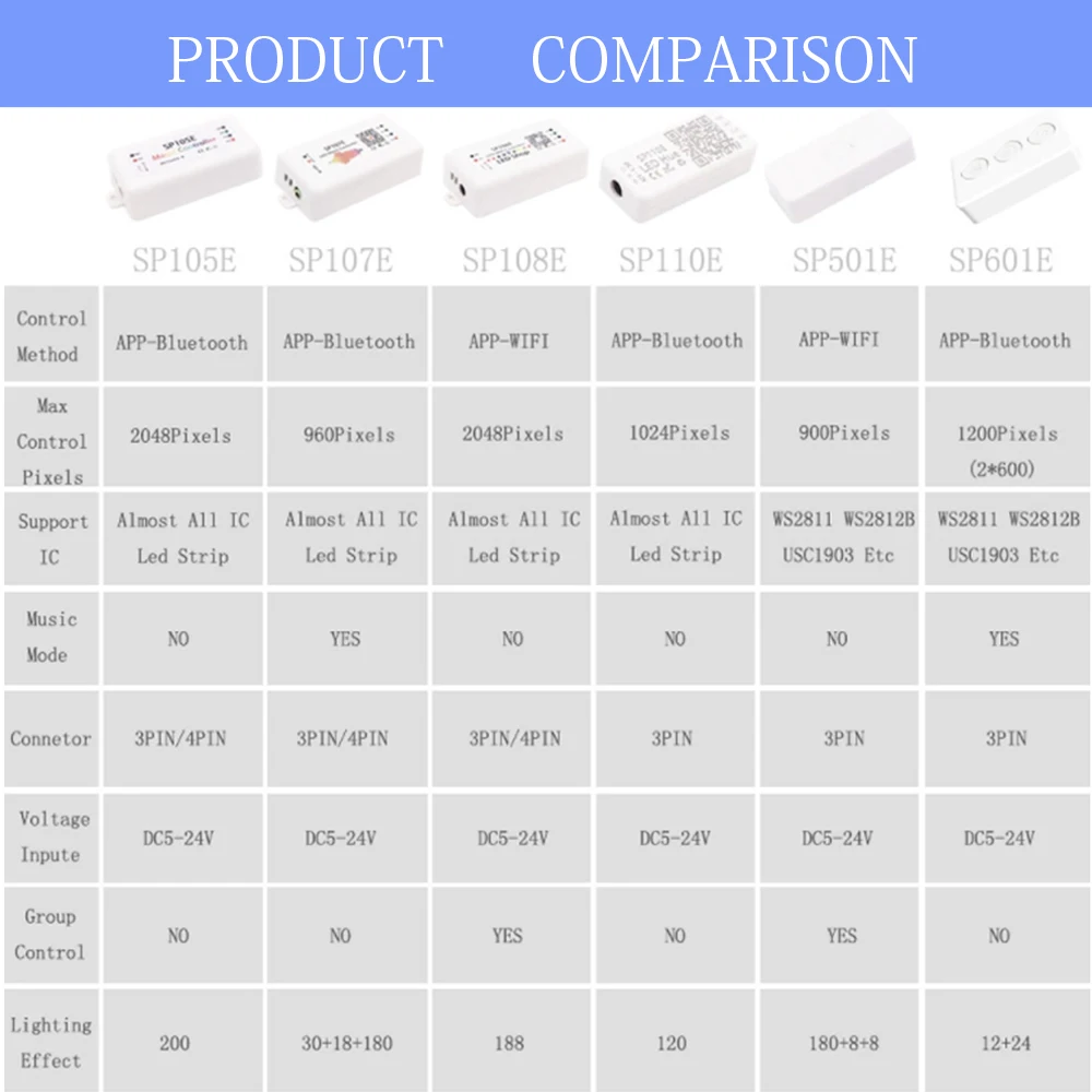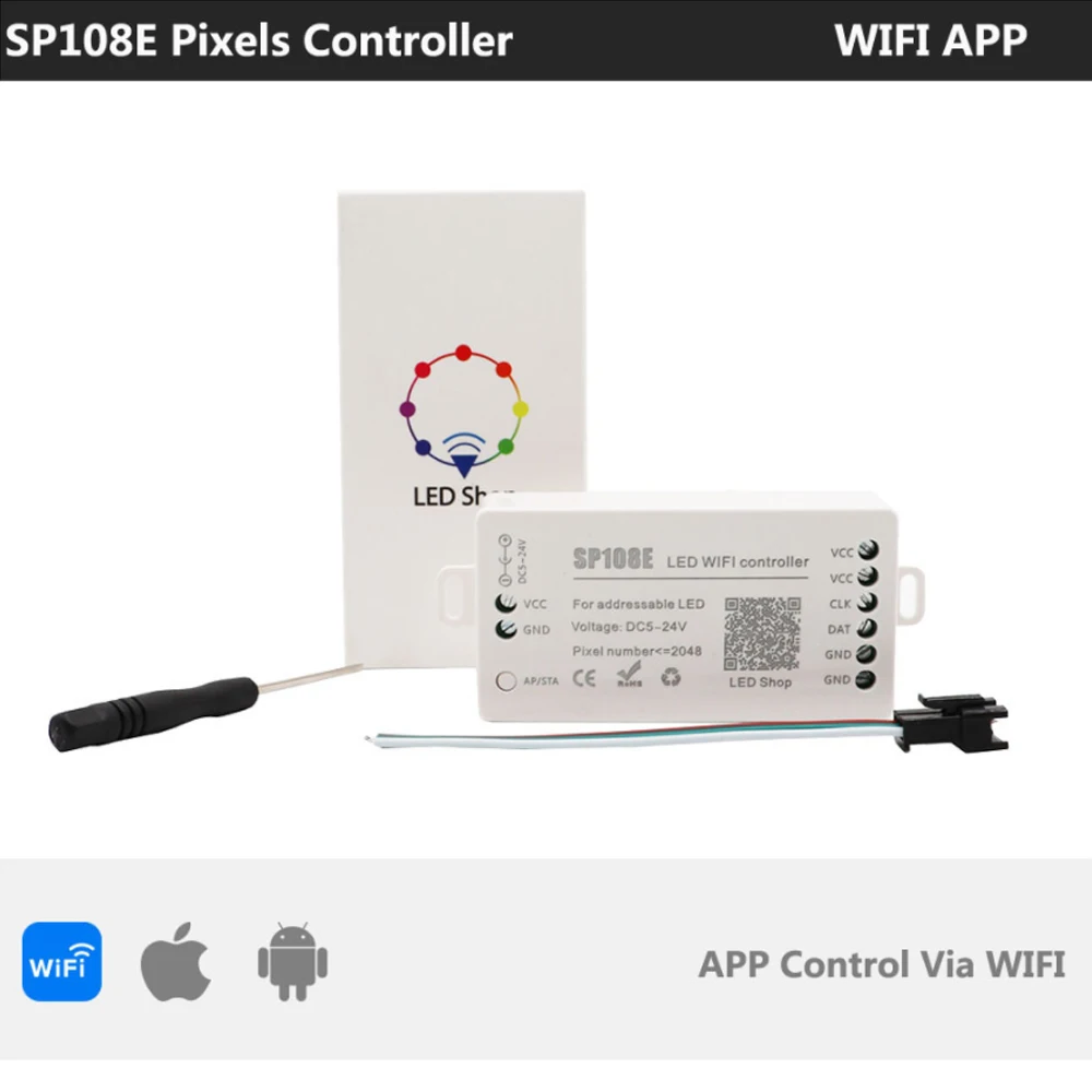 Метод управления: APP-WifiВходное напряжение: 5-24 В постоянного токаПиксель: 2048Разъем: 3pin/4pinРасстояние управления: 30 мВес изделия: 40 г;Размер изделия: 85 мм * 45 мм * 22 мм;Поддержка IC: WS2811 WS2812B WS2813 WS2815 WS2818 WS2801 SK6812 P943S P9411 P9413 TX1812 TX1813 SK6812-RGBW SM16703 UCS1903 TM1804 LPD6803 LPD8806 a188806 a8206 a208gs12
