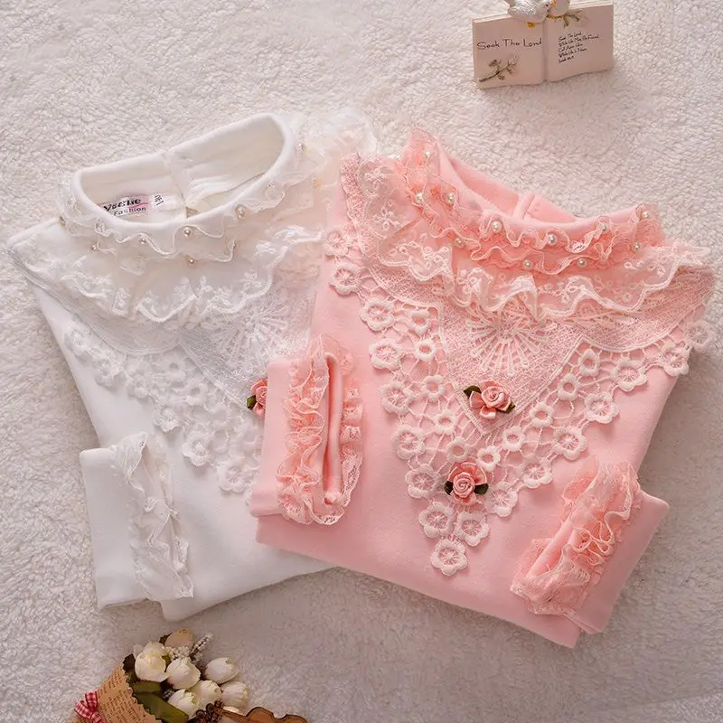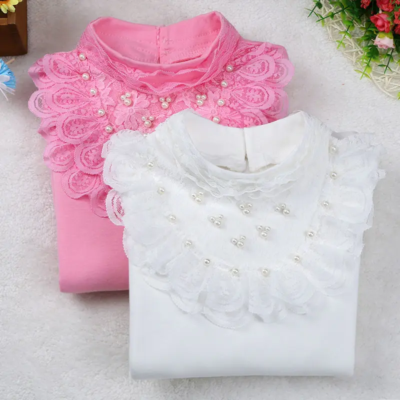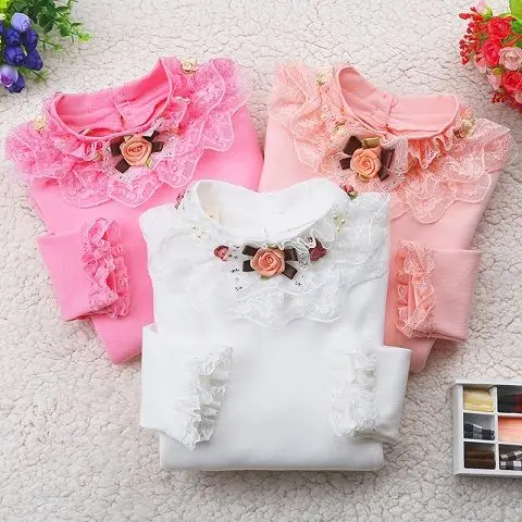 Коллекция 2021 года, весенне-осенние хлопковые детские базовые футболки Одежда для маленьких девочек Повседневная футболка с длинными рукавами и цветочным рисунком топы, Детская Кружевная футболка-Обратите внимание: если ваш ребенок пухленький, мы рекомендуем выбрать больший размер, спасибо.