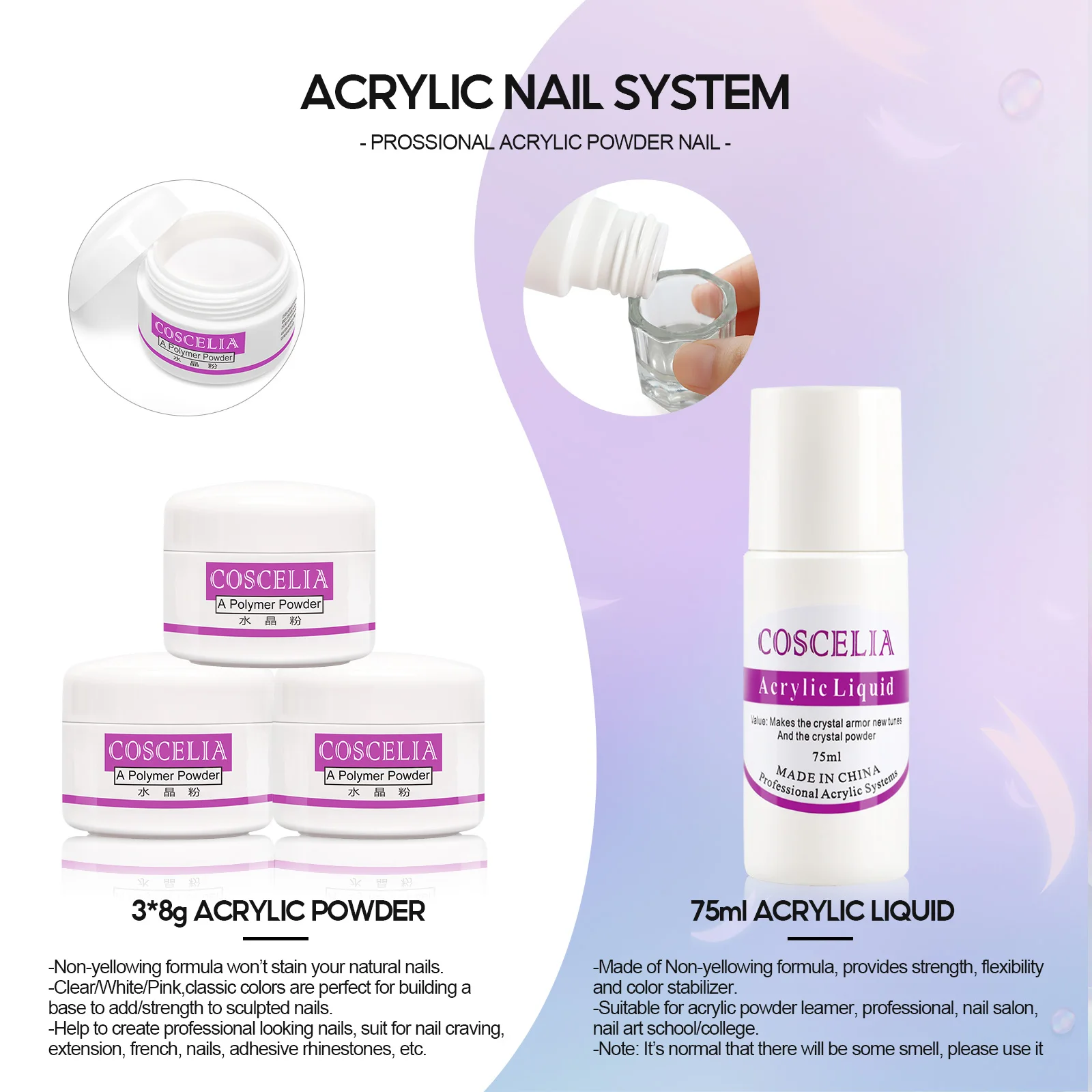 Отзывы о Набор акриловых порошков COSCELIA с УФ светодиодный лампой все для маникюра