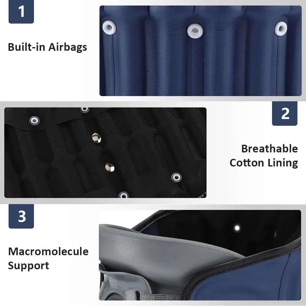 1. Регулируемое тяговое усилие можно контролировать, выпуская или добавляя давление надувного воздушного насоса, легко открыть Шейное межпозвонковое пространство и уменьшить трение шейки матки.