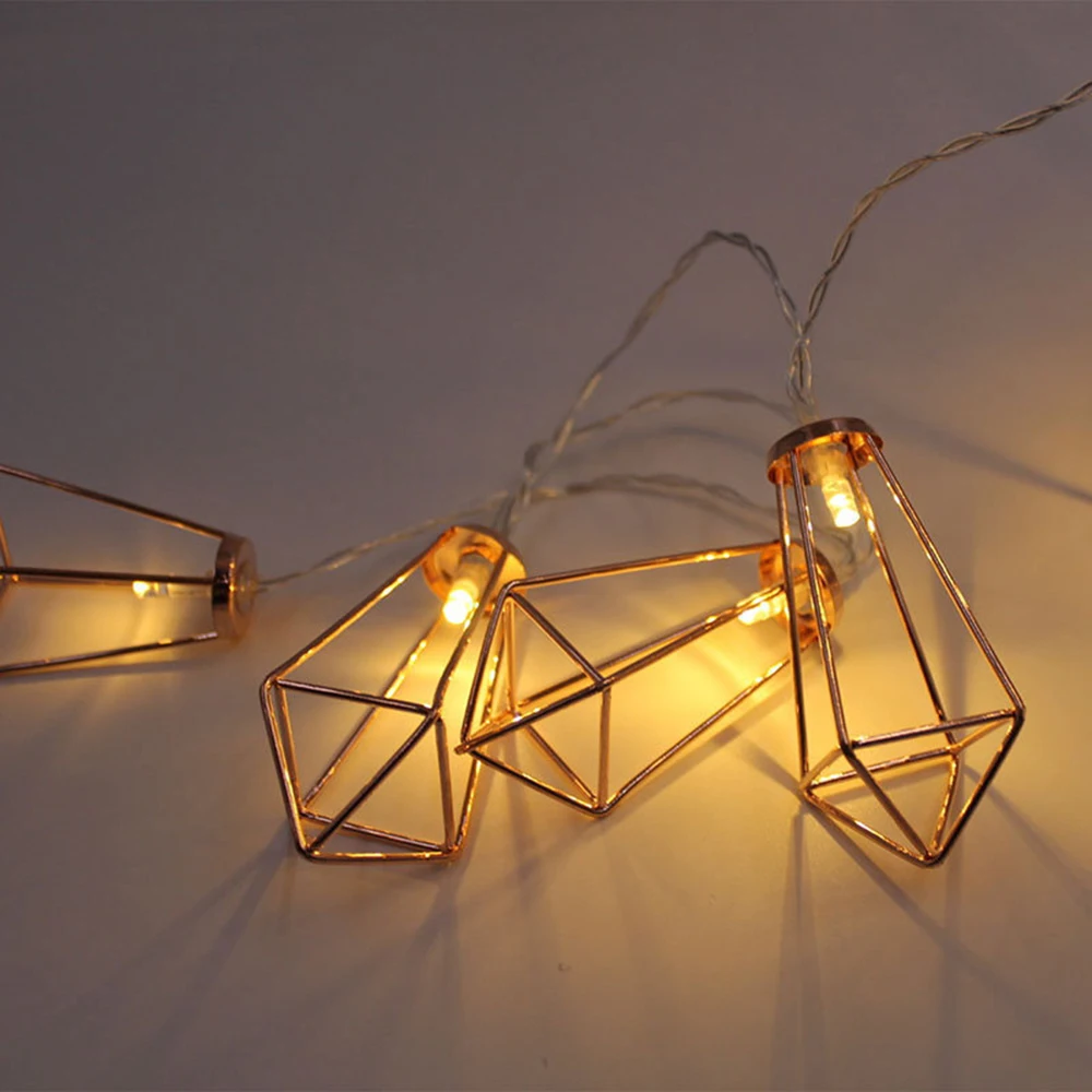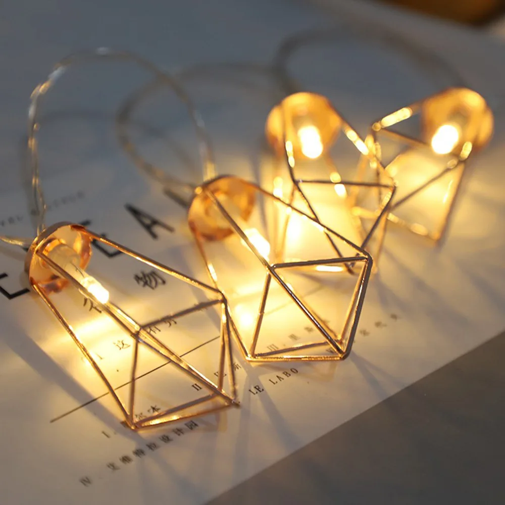 Алмазные гирлянды, USB/на батарейках, геометрические гирлянды, розовое золото, металлические лампы, Декор для дома, свадьбы, вечеринки, спальни