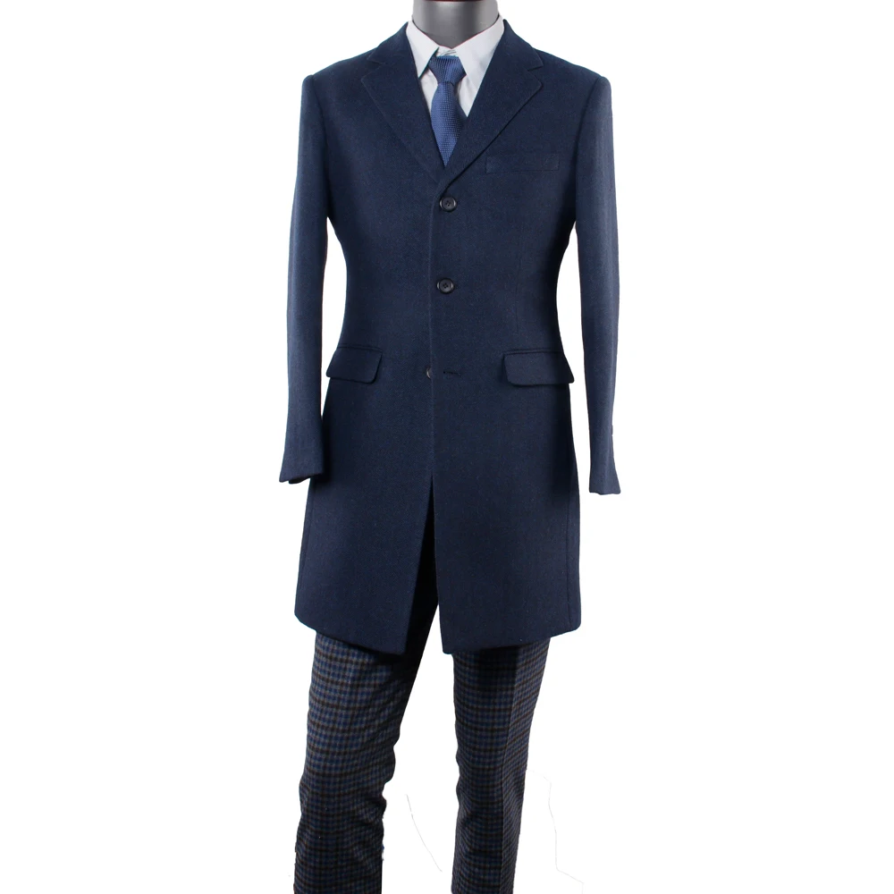 Деловое повседневное длинное пальто темно-синего цвета с узором в елочку 2020 твидовая куртка средней длины пальто средней длины зимнее пальто средней длины