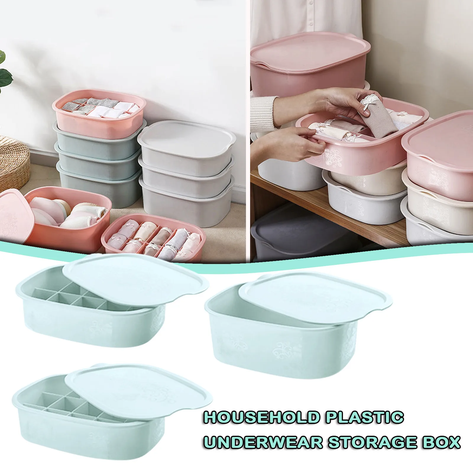 Домашняя пластиковая коробка для хранения нижнего белья с крышкой для хранения носков