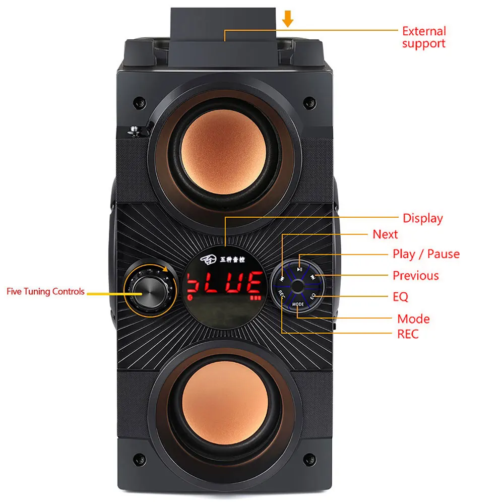 30 Вт портативный Bluetooth-динамик с четырьмя динамиками, большая мощность, беспроводной стерео бас-сабвуфер, динамик с поддержкой дистанционного управления, FM-микрофон, TF, AUX, USB