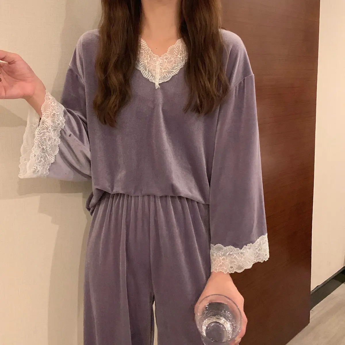 Отзывы о Пижамные комплекты женская модная Домашняя одежда Женская Весенняя кружевная
