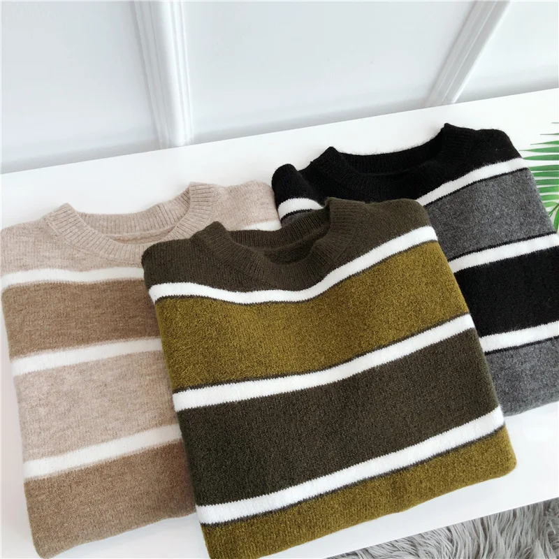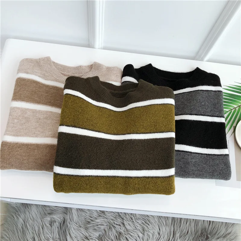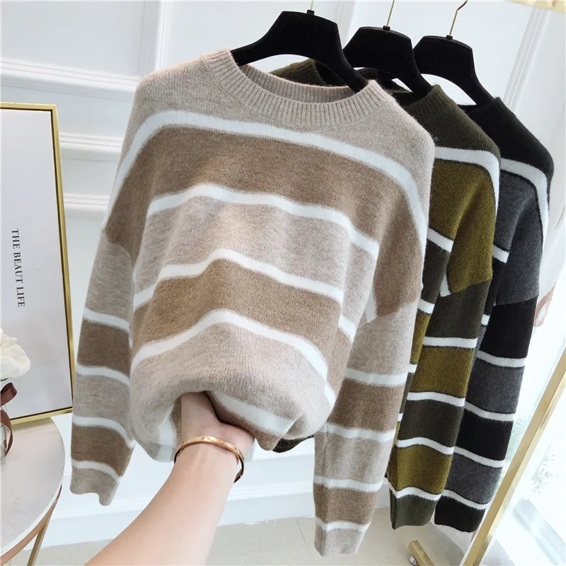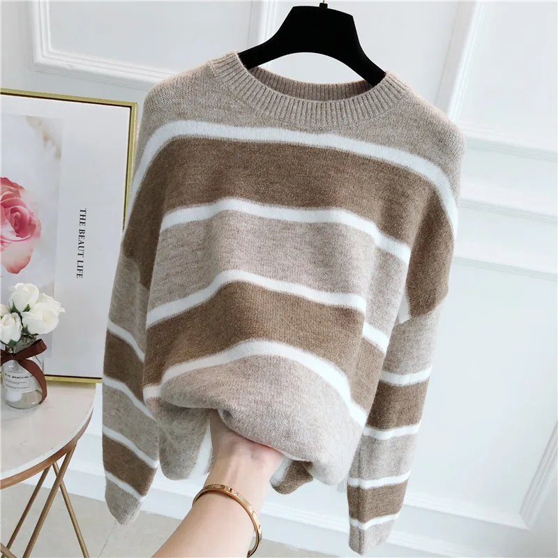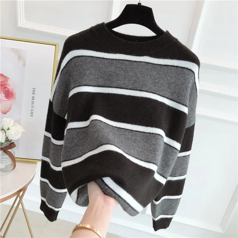 Отзывы о Свитер женский осенний разноцветный с длинным рукавом и круглым вырезом - купить