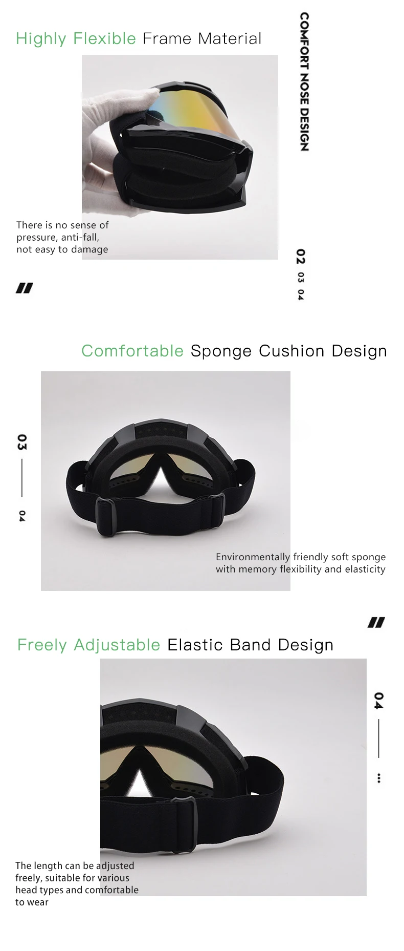 Использование оптики дизайн человеческого тела, имеет хорошую выхлопную вентиляцию, широкое видение и может избежать сильных ветров, снежных зерен, mirage и всех видов сильный светильник
