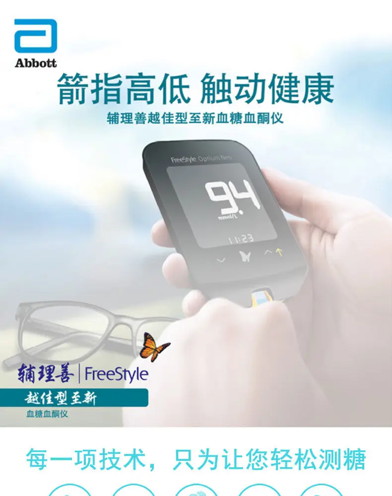 Тест-полоски для определения уровня глюкозы в крови абботт Фристайл опций Нео глюкометр для глюкозы в крови глюкометр для диабетиков кетон глюкометр