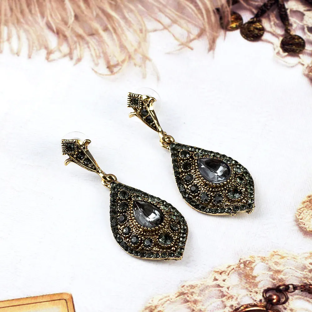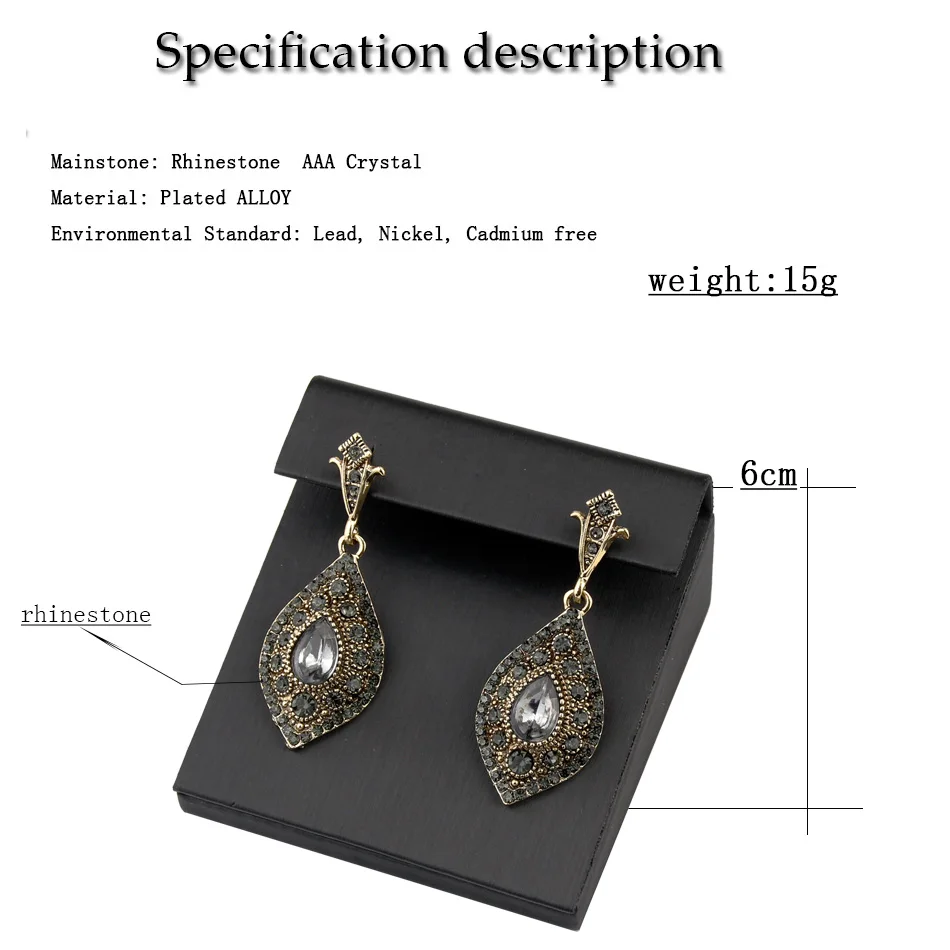 «Описание товара: Sunspicems 2020 богемный Свадебный комплект ювелирных изделий с серыми кристаллами, серьги, кольцо для женщин, античное золото, турецкое винтажное украшение для вечеринки