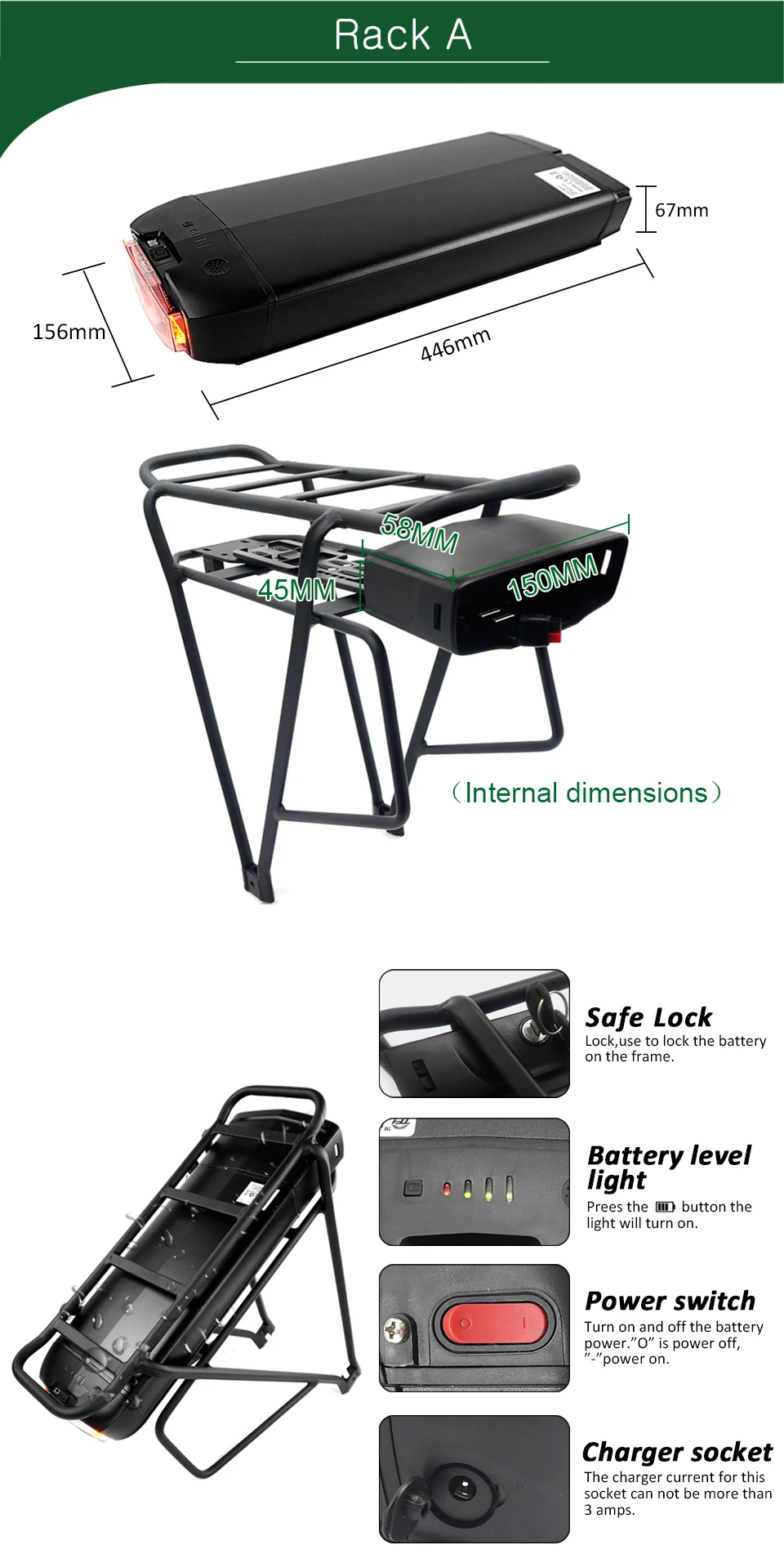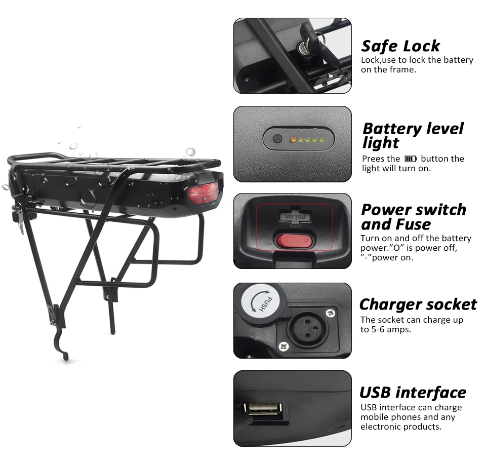 Отзывы о KT Мощная батарея 36 в 48 13 Ач 16 задняя стойка для Bafang eBike + двухслойный багаж - купить