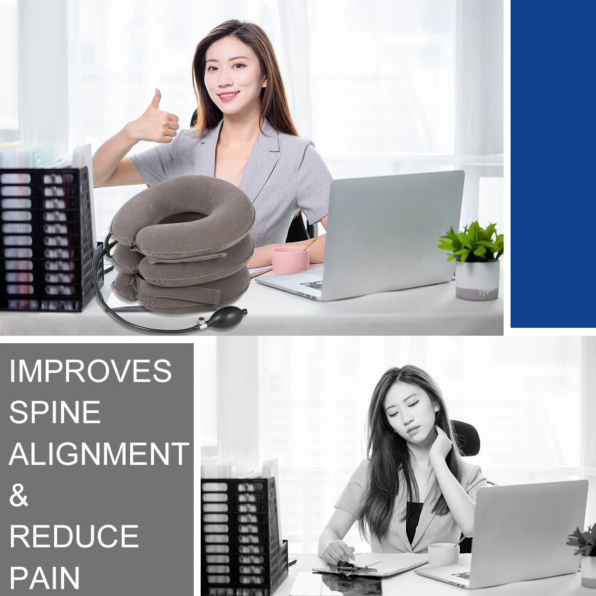 Портативное тяговое устройство для шеи-наши надувные подушки для шеи U могут быть с вами везде! Используется в автомобиле, на работе или дома. Подушки полностью разваливаются для удобного хранения или портативности.