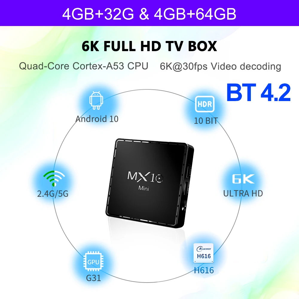 Отзывы о ТВ-приставка MX10 Mini Android 10 поддержка 2 4G двойной Wi-Fi BT 4 6K Google Voice Assistant медиаплеер Player