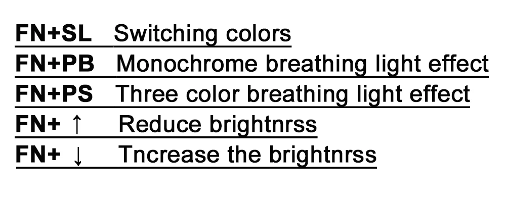 -- 3 уровня яркости светильник 33, 66 и 100 Регулируемая яркость, нажмите FN + up или FN + down для настройки