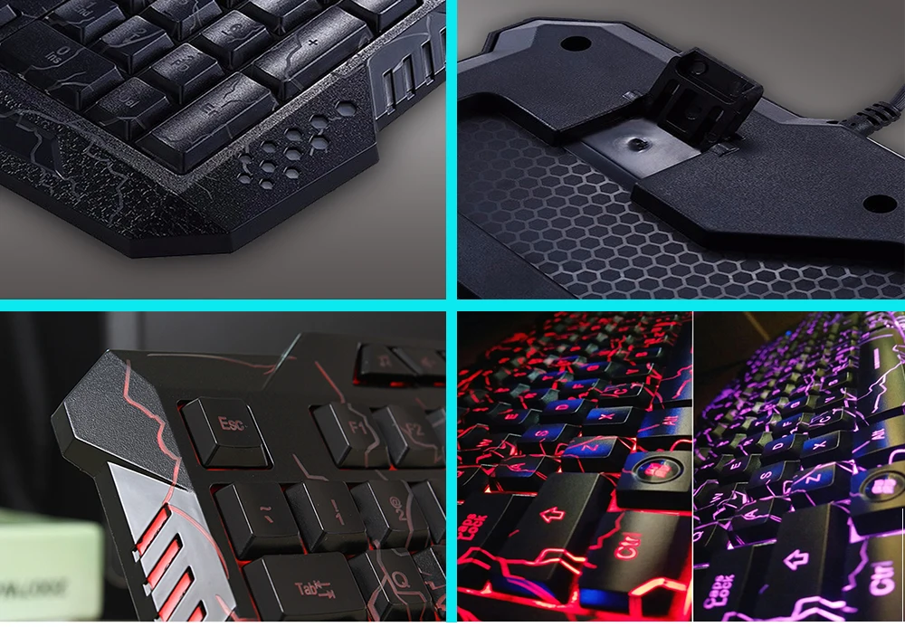 M200 игровая клавиатура мышь Комбинация Светодиодный 3-цветная дышащая Подсветка USB Проводная Водонепроницаемая клавиатура с трещинами для компьютера геймера