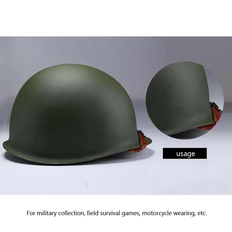 Название: репродукция M1 Стальной шлем Цвет: зеленый Размер: подходит для людей 56 ~ 64 см окружность головы Вес: 1,8 кг Подходит для: CS игры/Пейнтбол съемки Спортивный стиль: для охоты на открытом воздухе, для боевых действий, для езды на мотоцикле