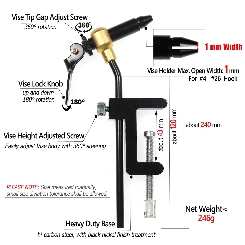● Держатель тиски для завязывания на муху длина открытия: ≤ 1 мм