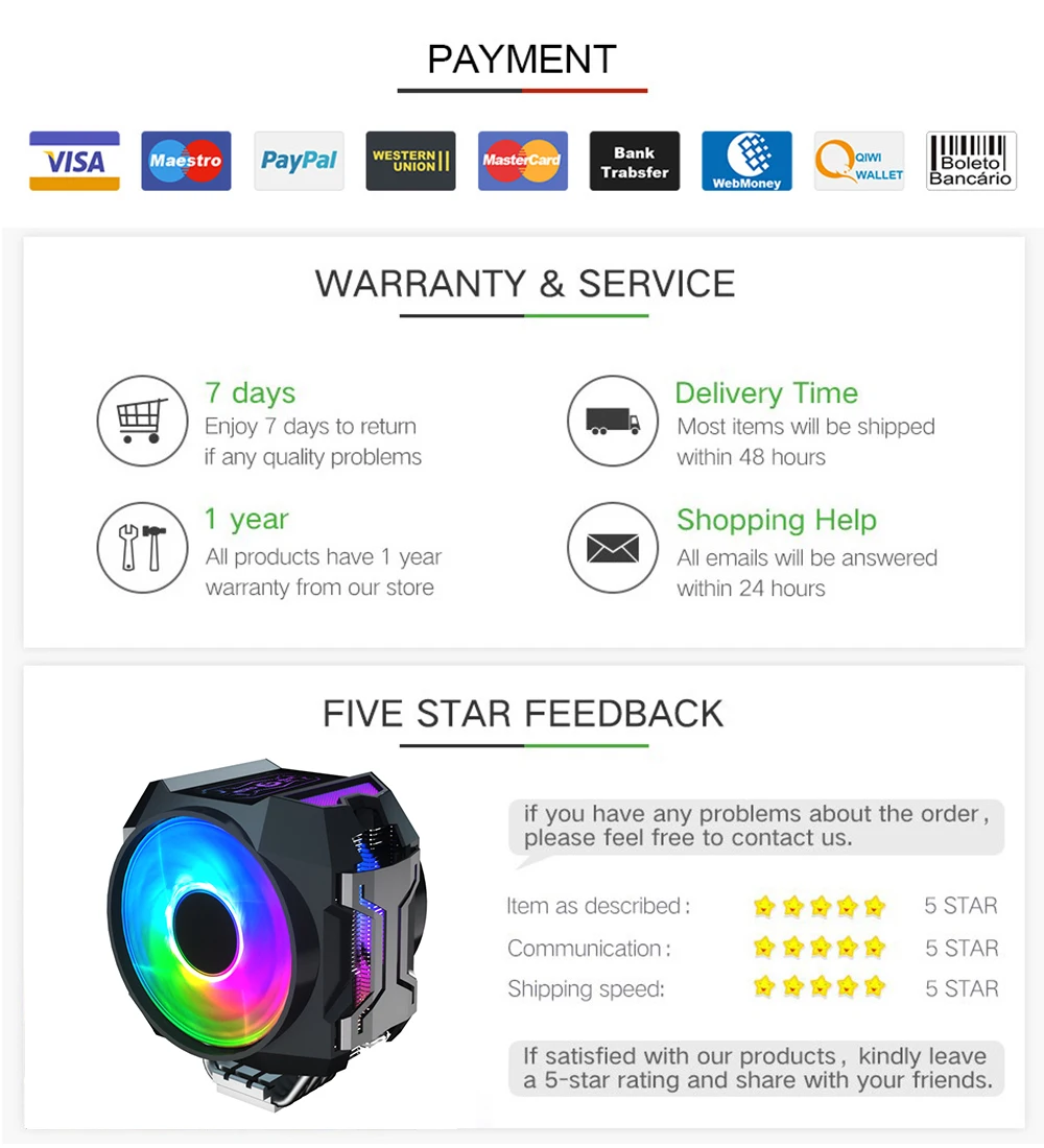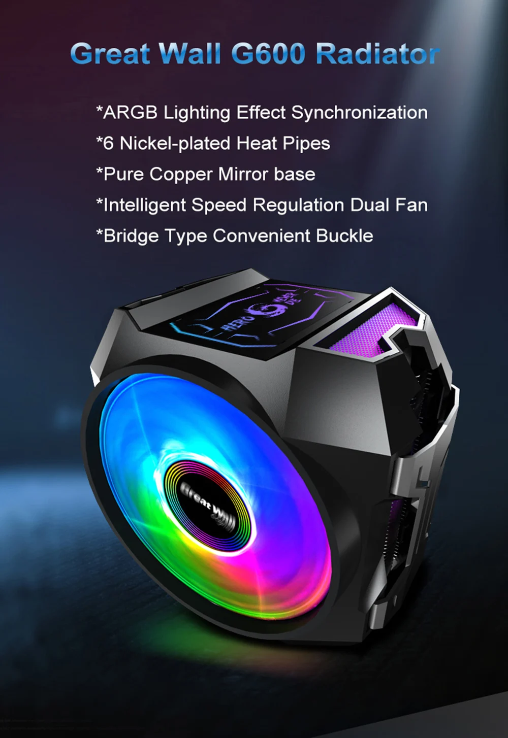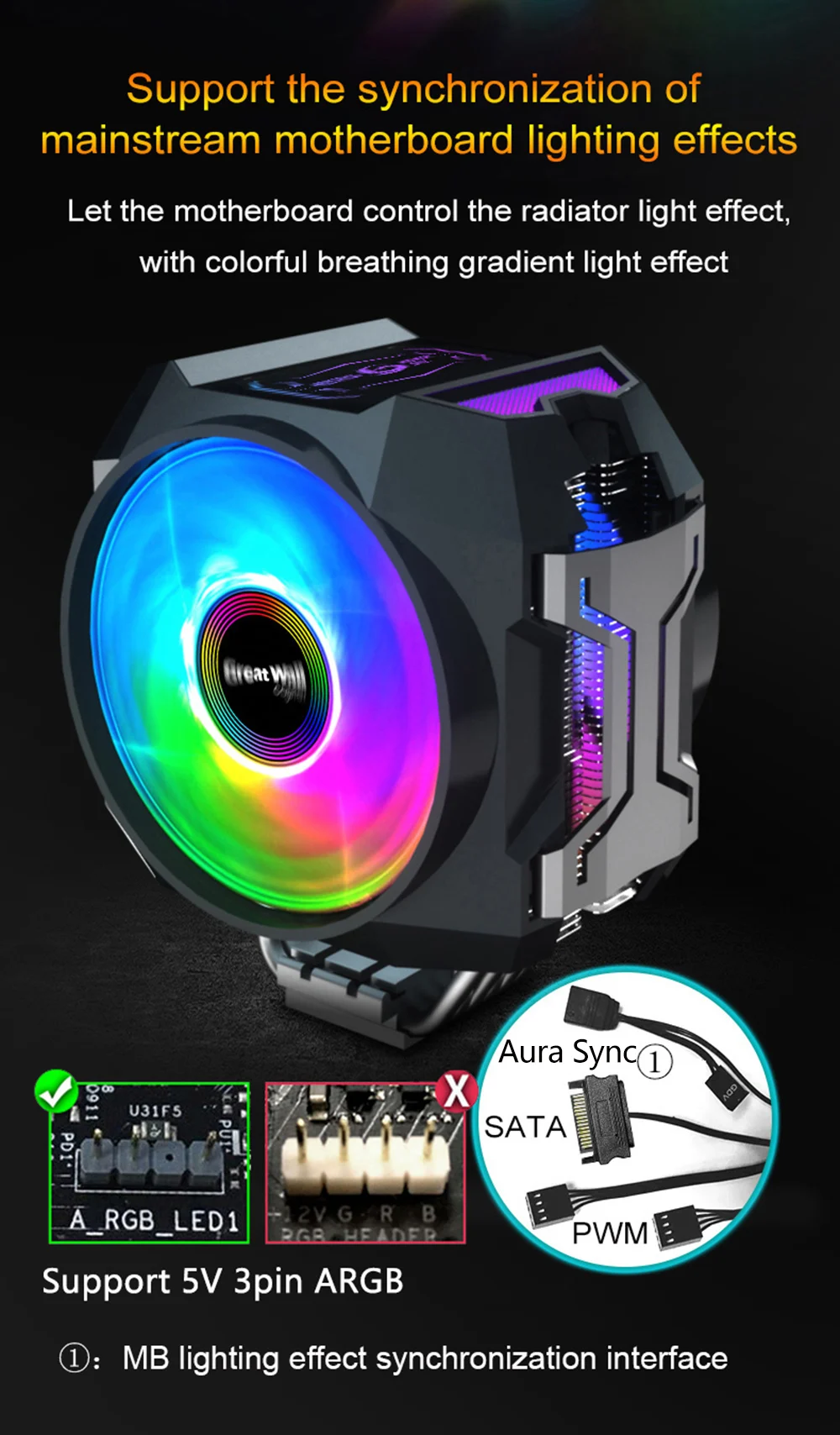 Отзывы о Кулер Great Wall для ПК с RGB-подсветкой двойной PWM вентилятор 120 мм 4Pin 6 тепловых трубок