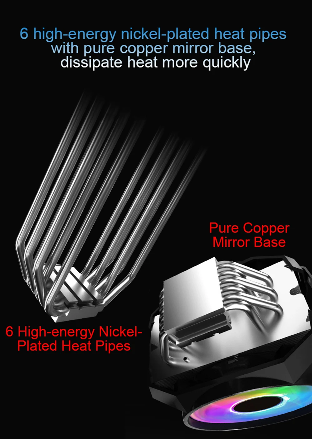 Двойные ШИМ-вентиляторы и зеркальная основа из чистой меди, большой поток воздуха и быстрое отведение тепла.