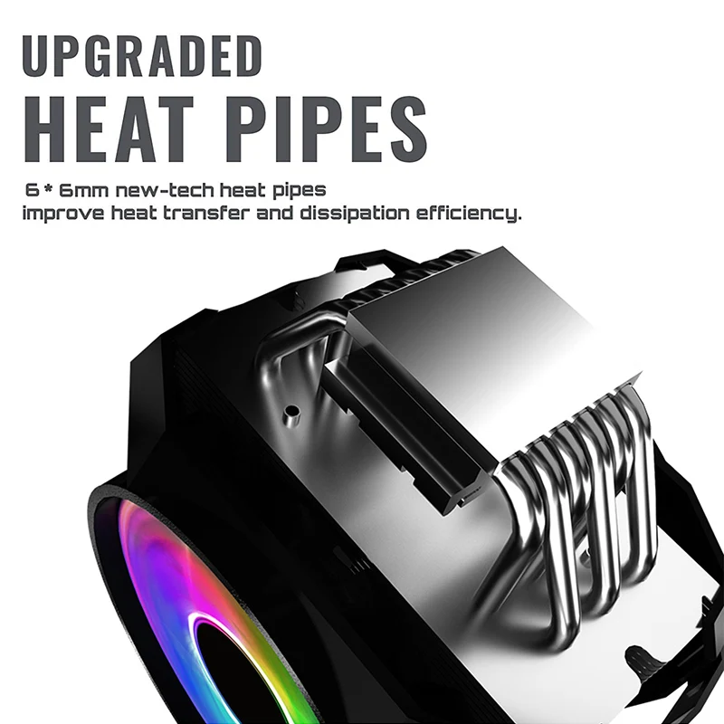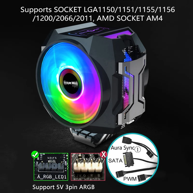 Кулер Great Wall для ПК, двойной ШИМ-вентилятор с RGB-подсветкой, 120 мм, 4 контакта, 6 тепловых трубок, охлаждение процессора LGA 2011 2066 AM4 AMD