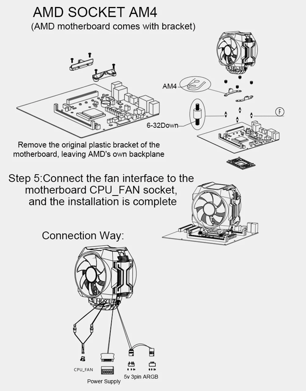 Шаг 5: подключите интерфейс вентилятора к разъему материнской платы CPU_FAN. И установка завершена.