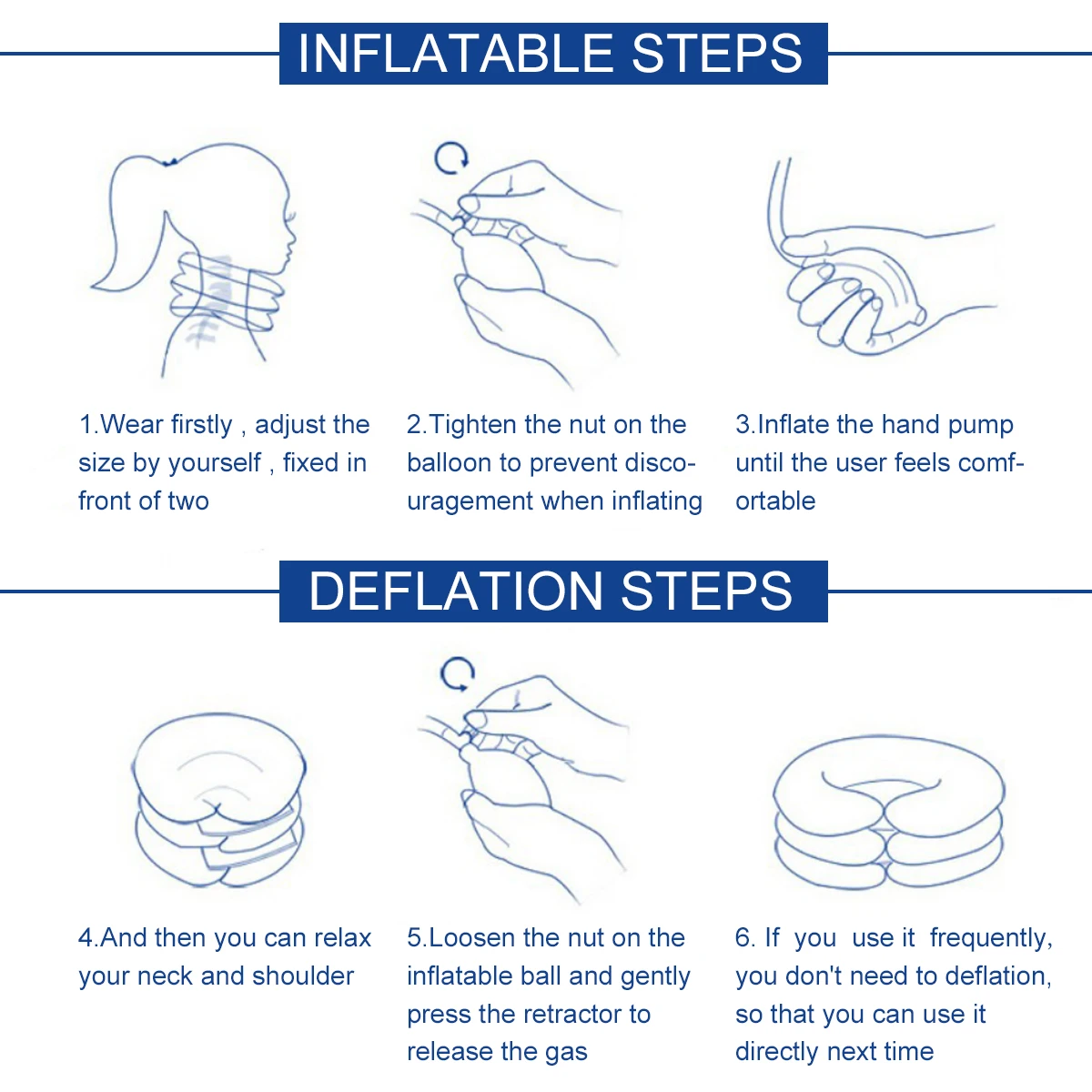 Полностью регулируемый-мягкий и полностью регулируемый, шейный Ортез для вытяжения может быть надут для оптимального комфорта вокруг шеи. O ne размер подходит для большинства людей, один шейный Тяговый воротник подходит для всей семьи.