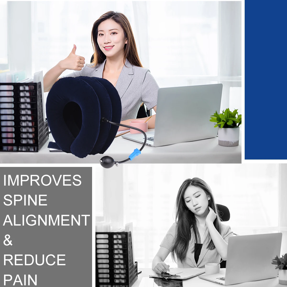 Портативное тяговое устройство для шеи-наши надувные подушки для шеи U могут быть с вами везде! Используется в автомобиле, на работе или дома. Подушки полностью разваливаются для удобного хранения или портативности.