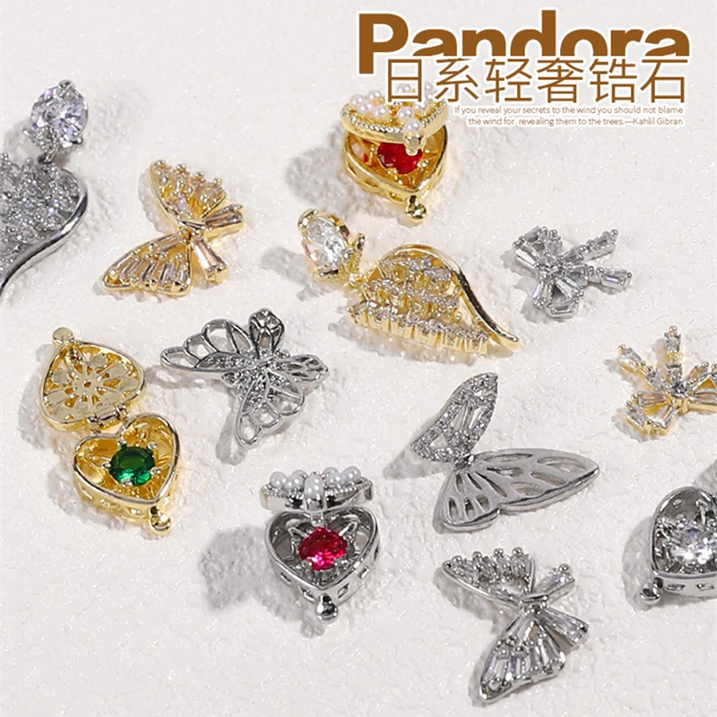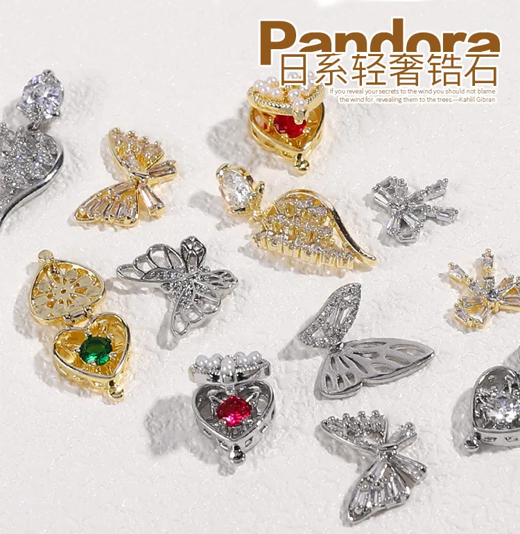2 шт., Волшебная коробка из сплава с подвеской, 3D украшения для дизайна ногтей, бант, Бабочка, Алмазный кристалл, циркон, ювелирное изделие, аксессуары для дизайна маникюра